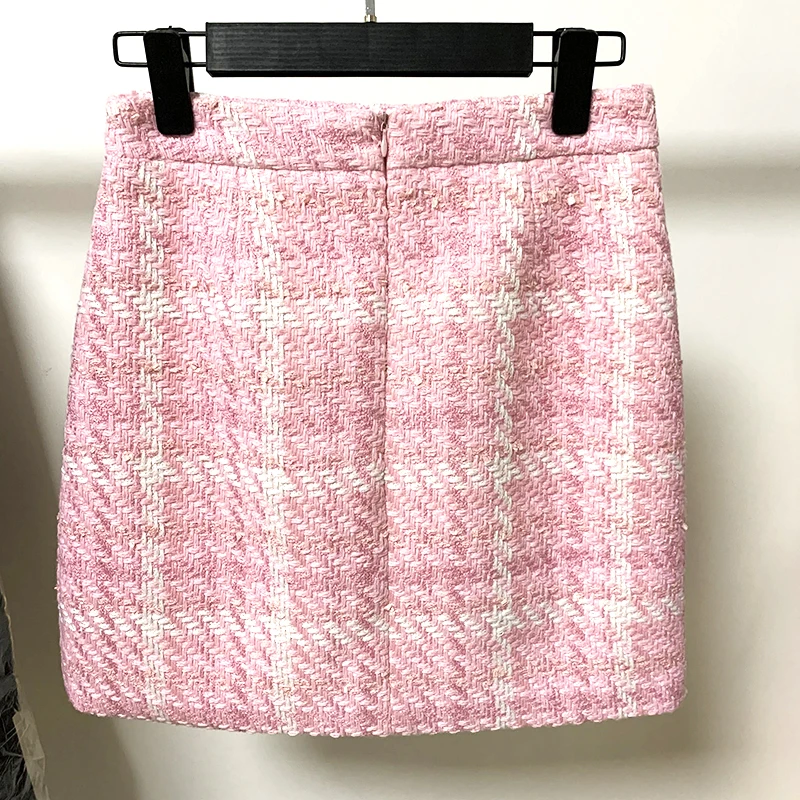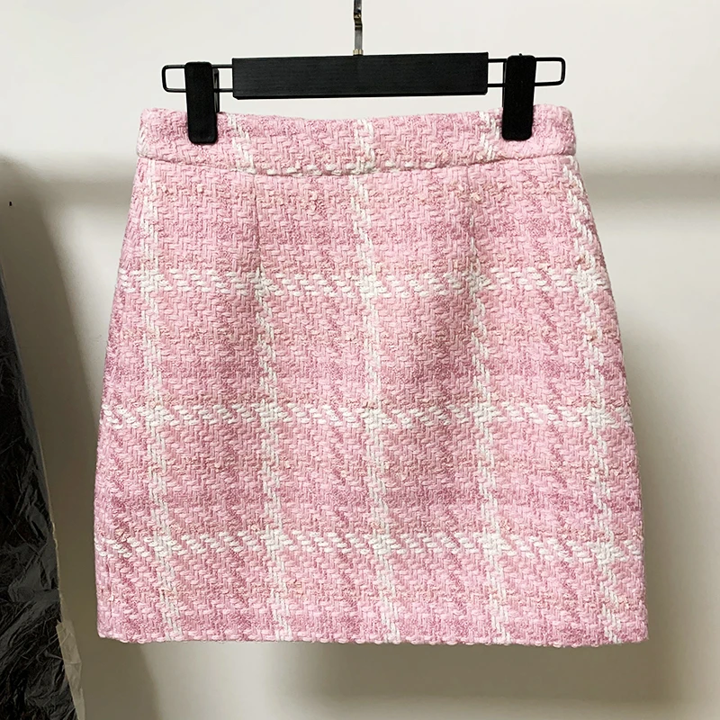 Новинка 2021, модные дизайнерские розовые юбки, Женская милая шерстяная твидовая юбка из смешанных цветов в клетку