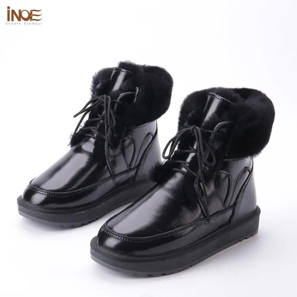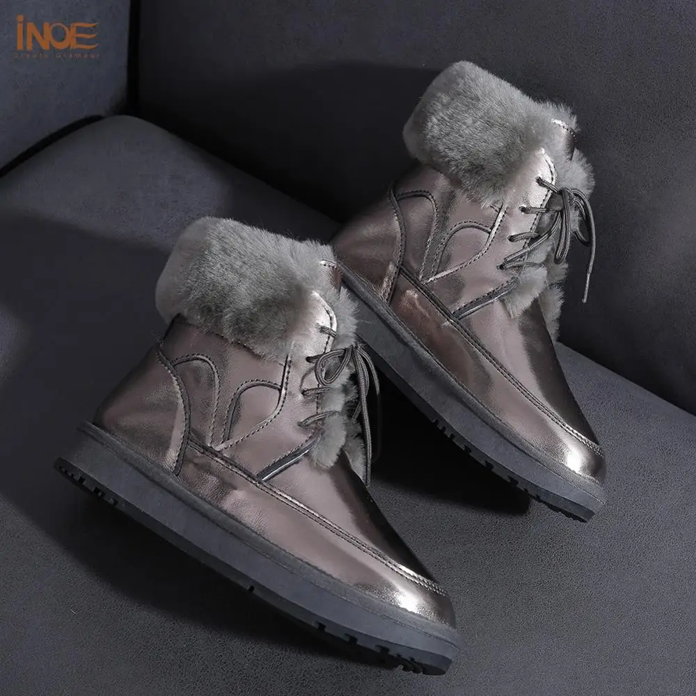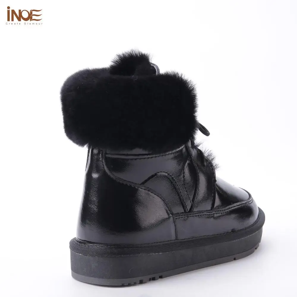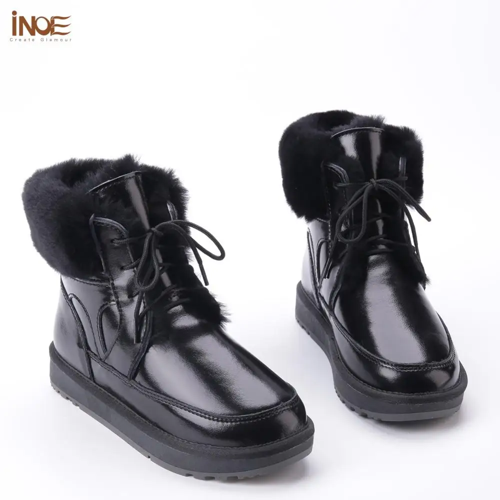INOE 2021 Новые модные мужские повседневные зимние зимние ботинки из натуральной кожи с натуральным овечьим мехом на подкладке из натуральной кожи, теплая обувь на плоской подошве, непромокаемый черный