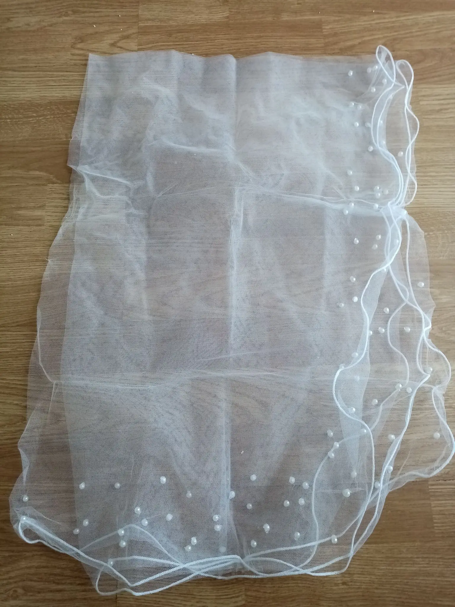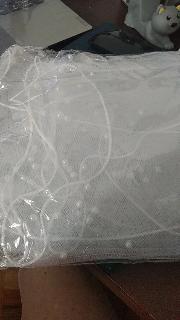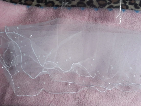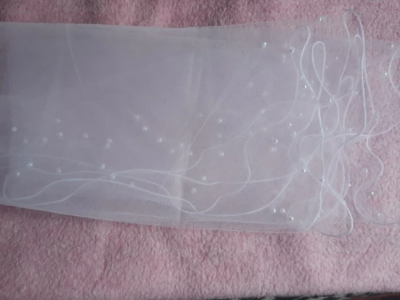 Жемчужины приклеиваются к вуали (клей очень заметен), и они падают. Они выпадали из сумки, как только я открыть упаковку. Цвет не слоновой кости, он чисто белый. Я думаю, что я могу сделать с этой вуалью, я думаю, что это может быть хорошей занавеской или москитной сеткой.