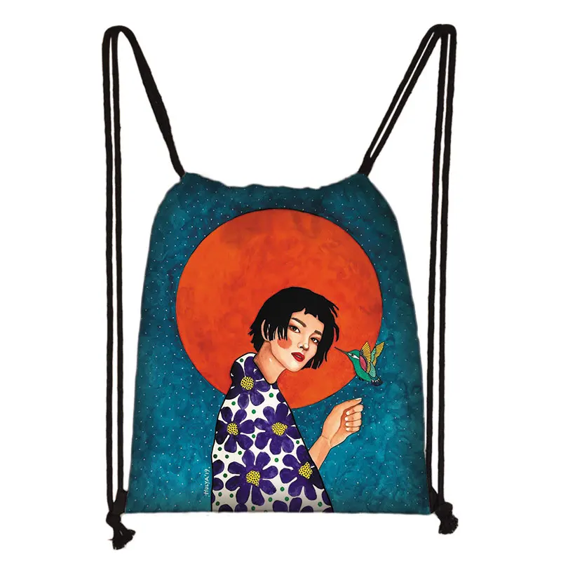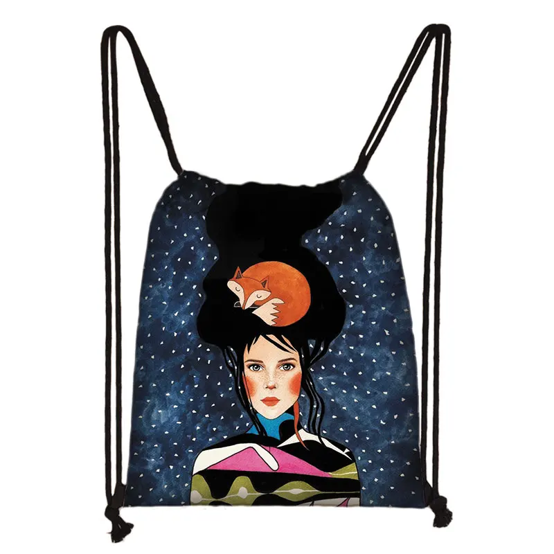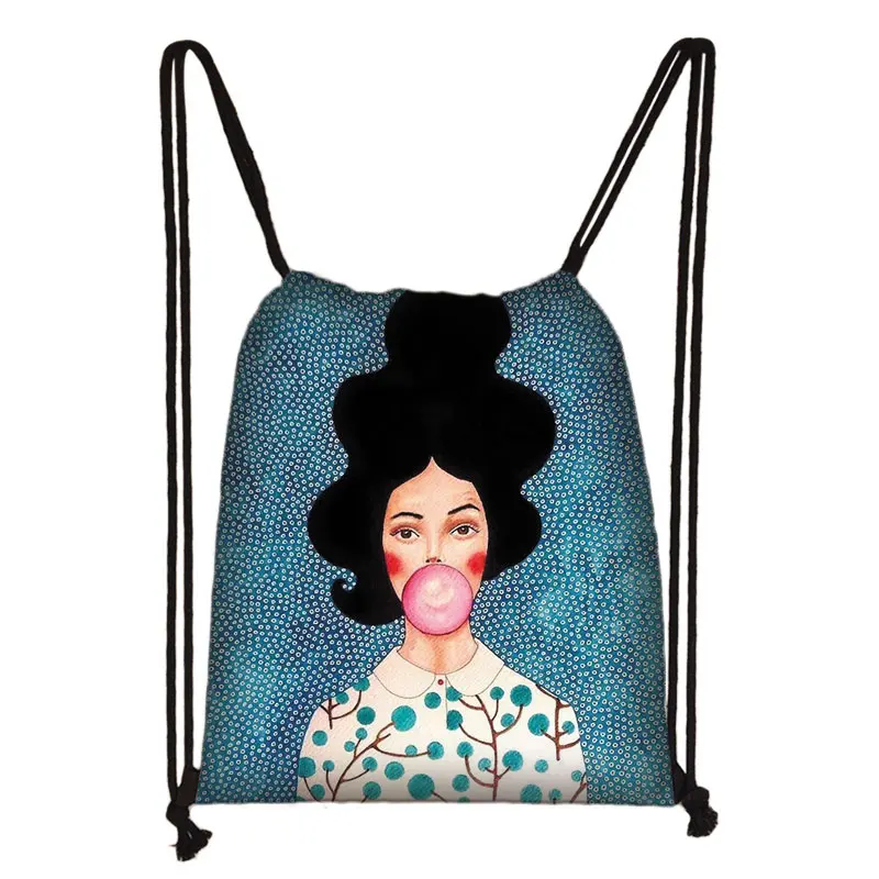 Сумка на шнурке с принтом афро-девочек, Женский Подростковая дорожн...