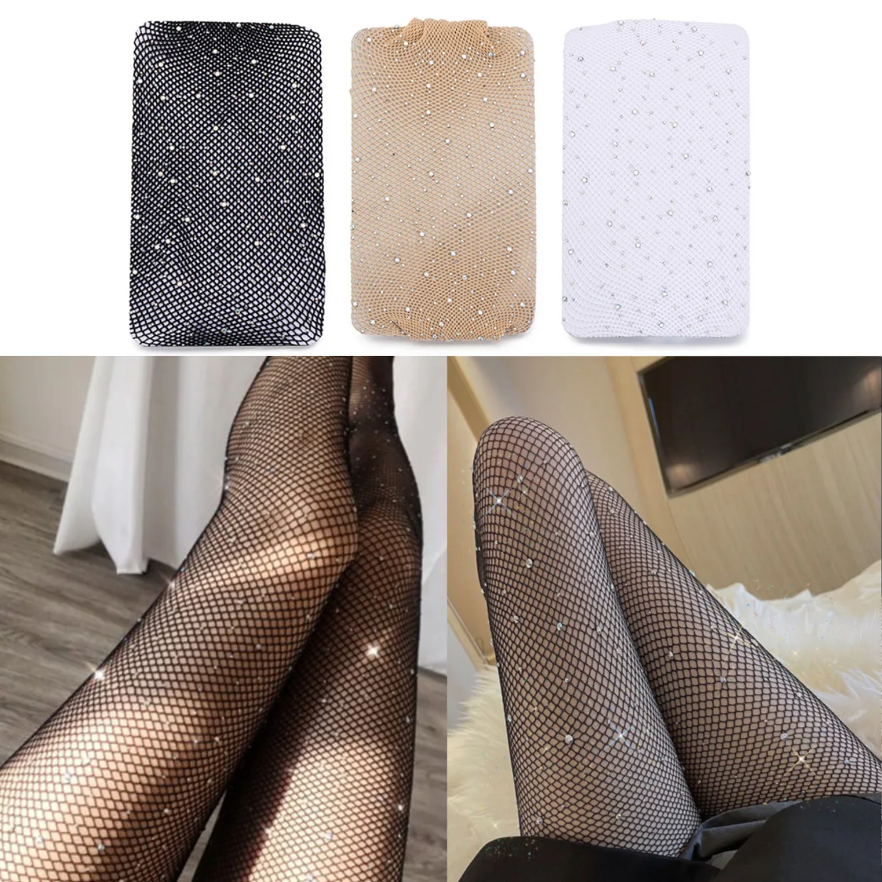 1 шт., сексуальные блестящие чулки в сеточку, женские сетчатые колготки, блестящие женские колготки стразы, Чулочные изделия с высокой талией, нейлоновые чулки