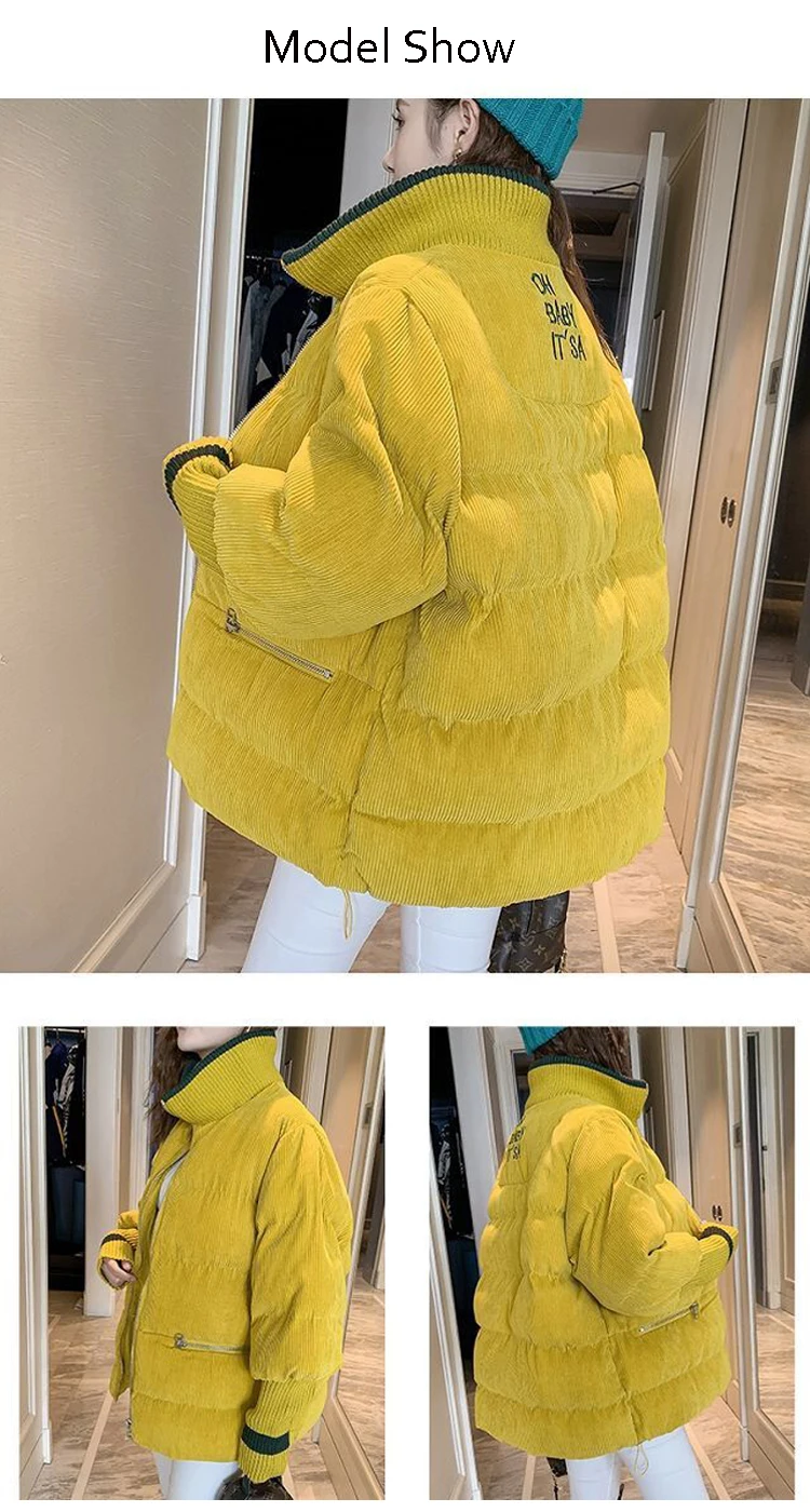 Вельветовая куртка с хлопковой подкладкой, Женская свободная зимняя...