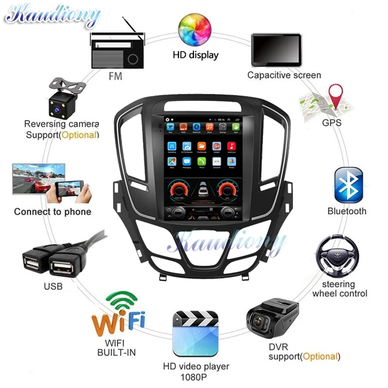 Автомагнитола Kaudiony, мультимедийный проигрыватель на Android 11 с экраном 10,4 дюйма в стиле Tesla для Opel Insignia Buick Regal, Dvd, GPS-навигацией, 4G