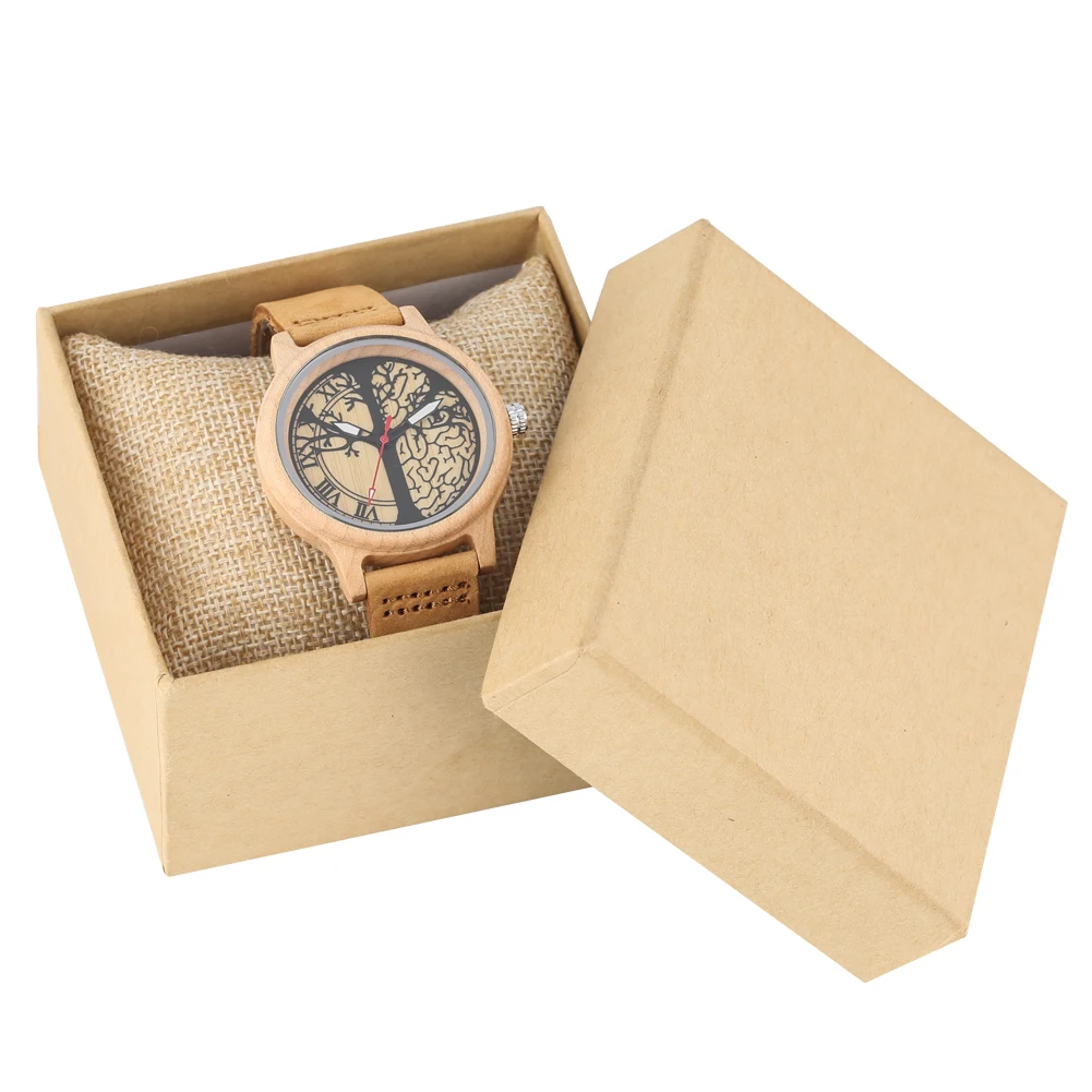 Женские деревянные часы с кожаным ремешком, деревянные часы с рисун...