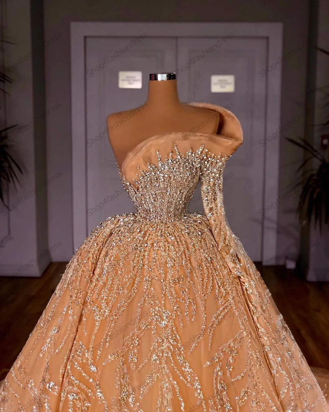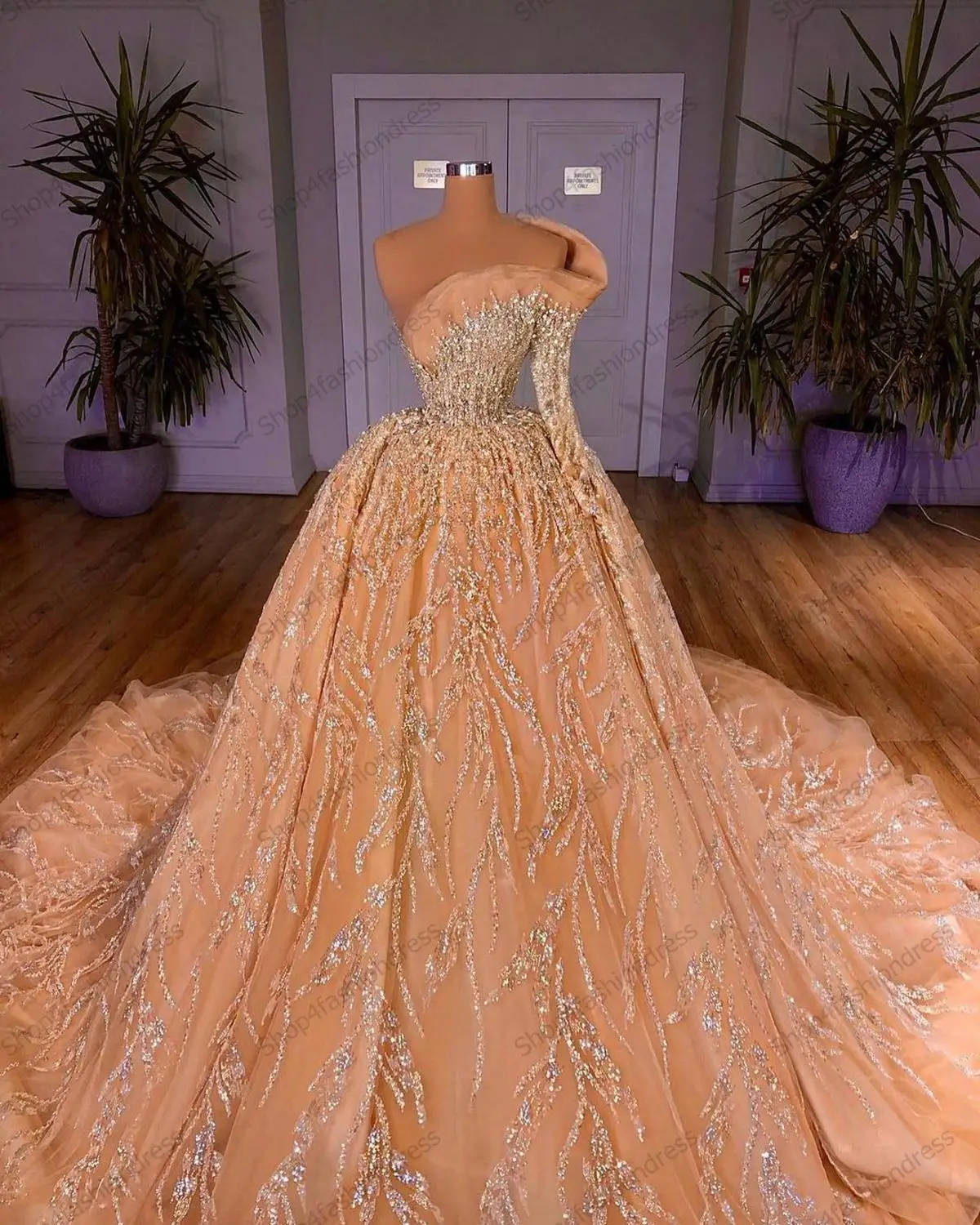 Арабское вечернее платье, блестящее золотистое длинное платье с дли...