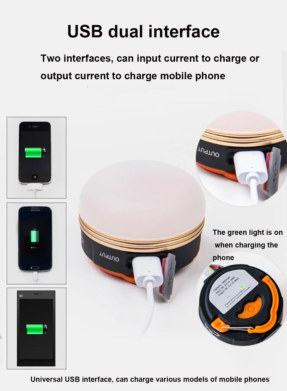 Этот продукт является USB зарядным типом, который может использоваться в качестве внешнего аккумулятора Светильник источник света: 5 ярких SMD светодиодный лампы Световой поток продукта: высокая яркость 180 лм, средняя яркость 90 лм, быстрое мигание 70 лм Время разряда: высокий светильник 4 часа, средний Светильник 12 часов, быстрая вспышка 24 часа Режим переключения: Первая передача всегда включена, вторая передача включена, а третья передача мигает Мощность: 3 Вт Режим питания: зарядка через USB, мобильный телефон также можно заряжать Материал: корпус из АБС-пластика Уровень защиты: IP43