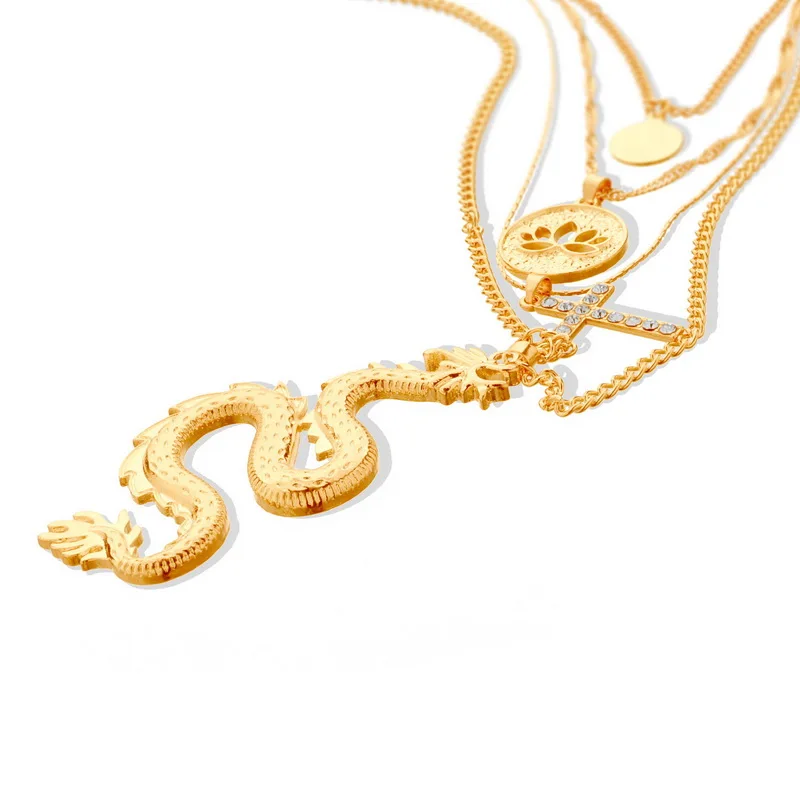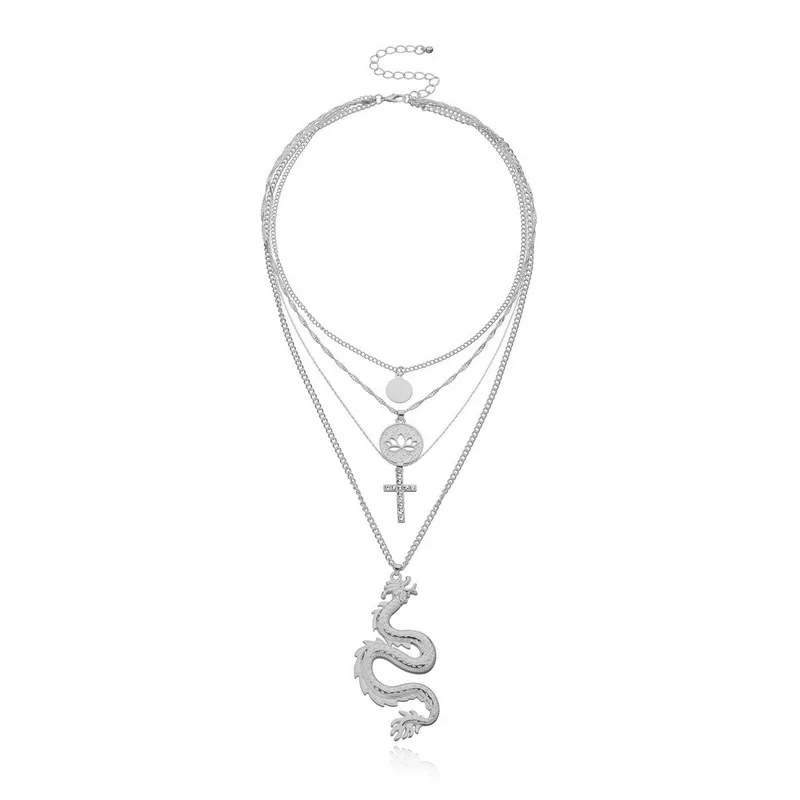 Винтаж изготовлен из Стразы Крест лотоса дракон кулон ожерелье для женщин в стиле панк Многослойные массивные ожерелья вечерние ювелирные изделия