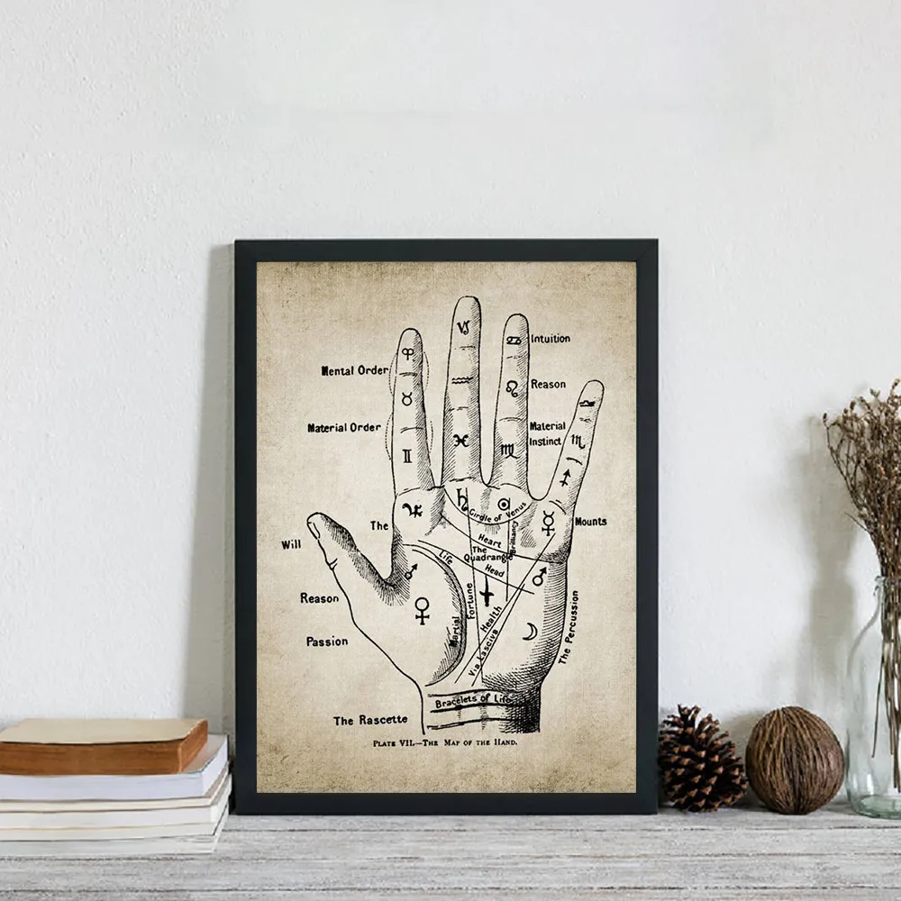 Palmistry ручной патент винтажный холст постер хироманность удача говоря ладони чтение ретро печать картина настенные картины комната дом icon star icon star icon star icon star icon star