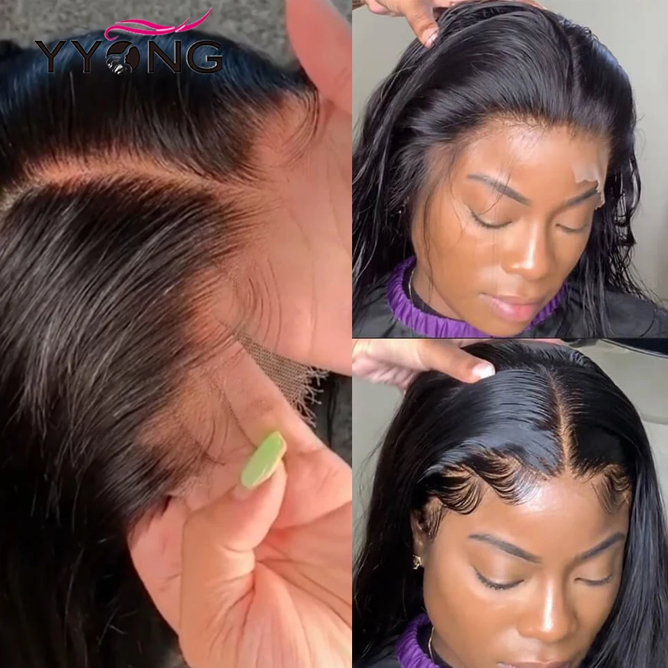 Индийский HD Прозрачный передний парик на сетке YYong, прямые парики из человеческих волос 13X4 на сетке с предварительно выщипанной естественной линией волос длиннее