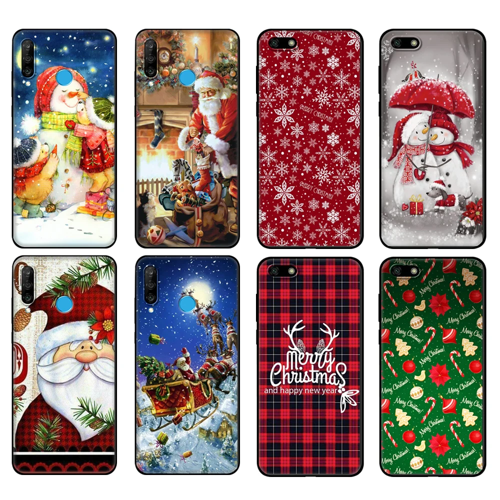 Черный чехол из ТПУ для Huawei Honor 20 Lite, 10, 10i, 20S, 30S, 30, чехол для Honor 7A 5,45, 7s, 7C 5,7, чехол с новогодним и рождественским дизайном