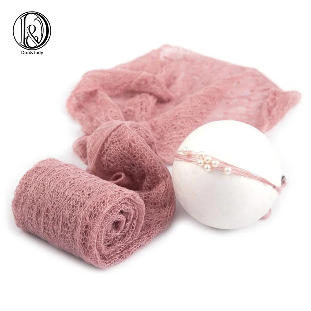 Повязка на голову из мохера и эластичной ткани для новорожденных, 2 шт.компл.