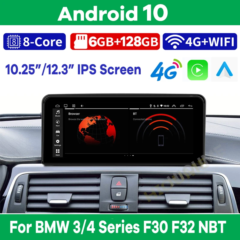 Автомобильный мультимедийный плеер, 10,25 дюйма12,3 дюйма, 8 ядер, 6 ГБ + 128 Гб, Android 10, GPS-навигация для BMW 34 Series F30 F31 F34 F32 F33 F36 NBT видео