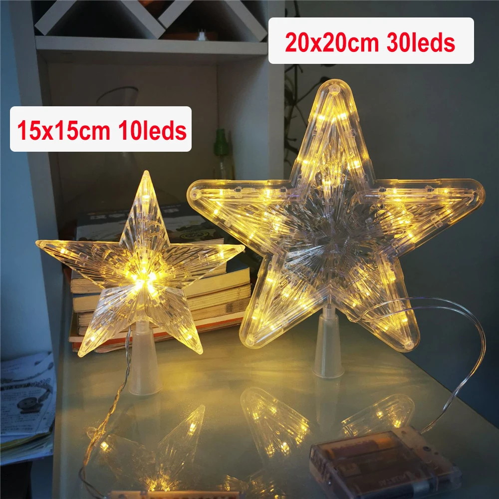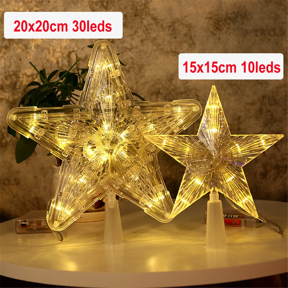 Топ для рождественской елки 20*20 см 15*15 см, звездный свет, 10 светодиодов, 30 светодиодов, пятиконечная Рождественская Ночная карта для свадьбы, праздника, сказочный Настольный Декор