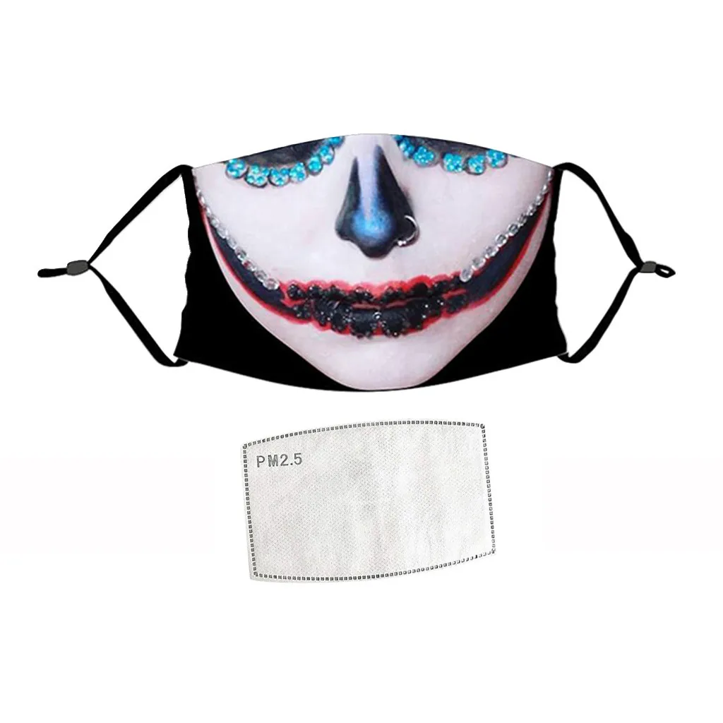 Костюмы на Хэллоуин для взрослых забавные с принтом черепа маска для лица с регулируемым активированный уголь PM2.5 анти-плюя защитный Моющиеся Многоразовые маска