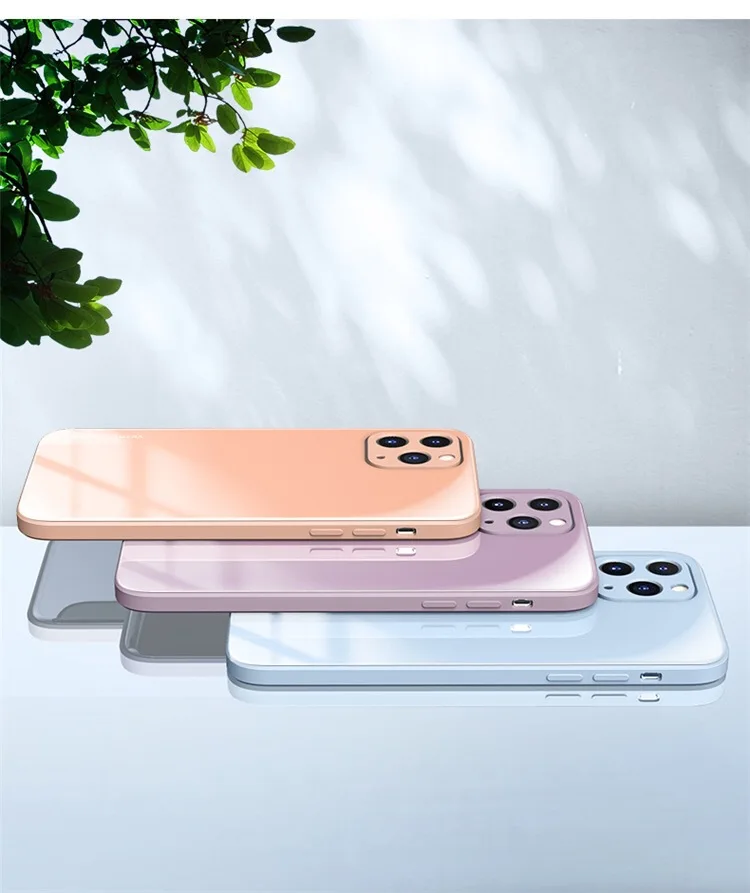 Чехол из жидкого стекла с прямыми краями для телефона iPhone 12 11 ...