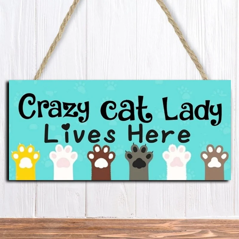 Уникальный семейный домашний декор подвесной знак Crazy Cat Леди живет здесь деревянная подвесная табличка подарок фот для кошек для влюбленных