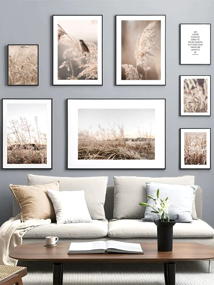 Винтажный ботанический осенний сушеный цветок, натуральная пампасная трава, художественный принт, Картина на холсте, Настенная картина для декора гостиной