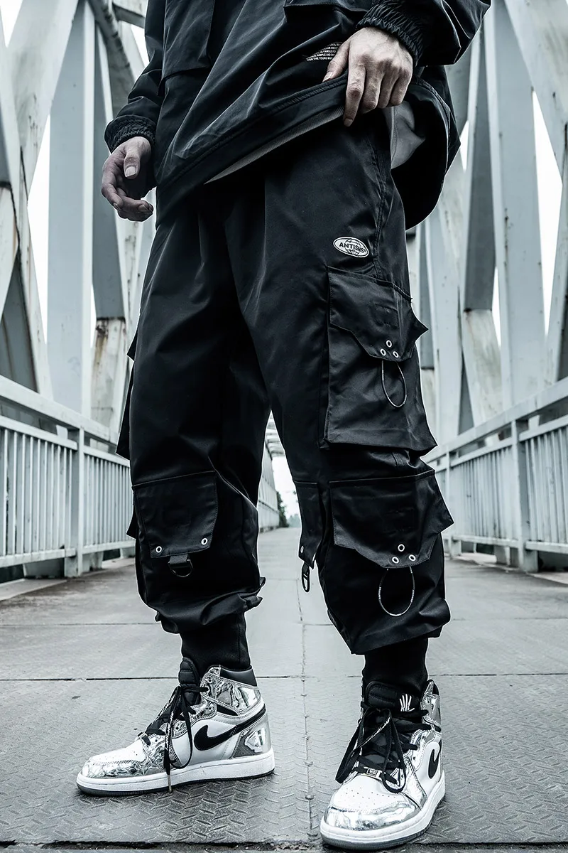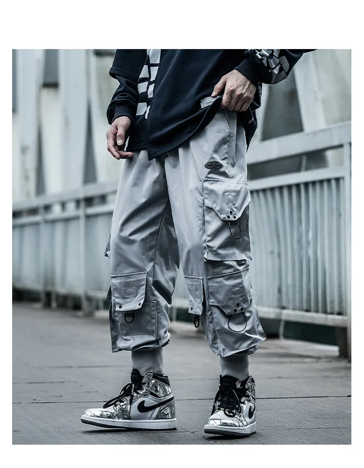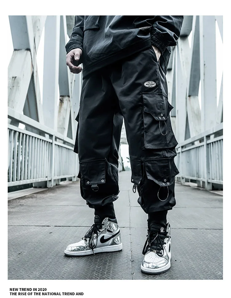 Брюки-карго мужские в стиле Харадзюку, свободные модные штаны-Десантники в стиле хип-хоп со множеством карманов, комбинезон на завязке, стиль хип-хоп