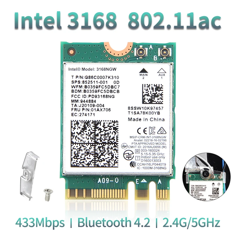 Очень хорошая wifi карта. Требуется установка драйвера на Windows 10, но Linux работает вне коробки. Протестировано на Wi-Fi 5 роутере, я получил скорость 780 Мбит/с, которая является удовлетворительной. Bluetooth также отлично работает. Товары были отправлены быстро и доставлены в течение двух недель. В целом настоятельно рекомендуемый товар и продавец.