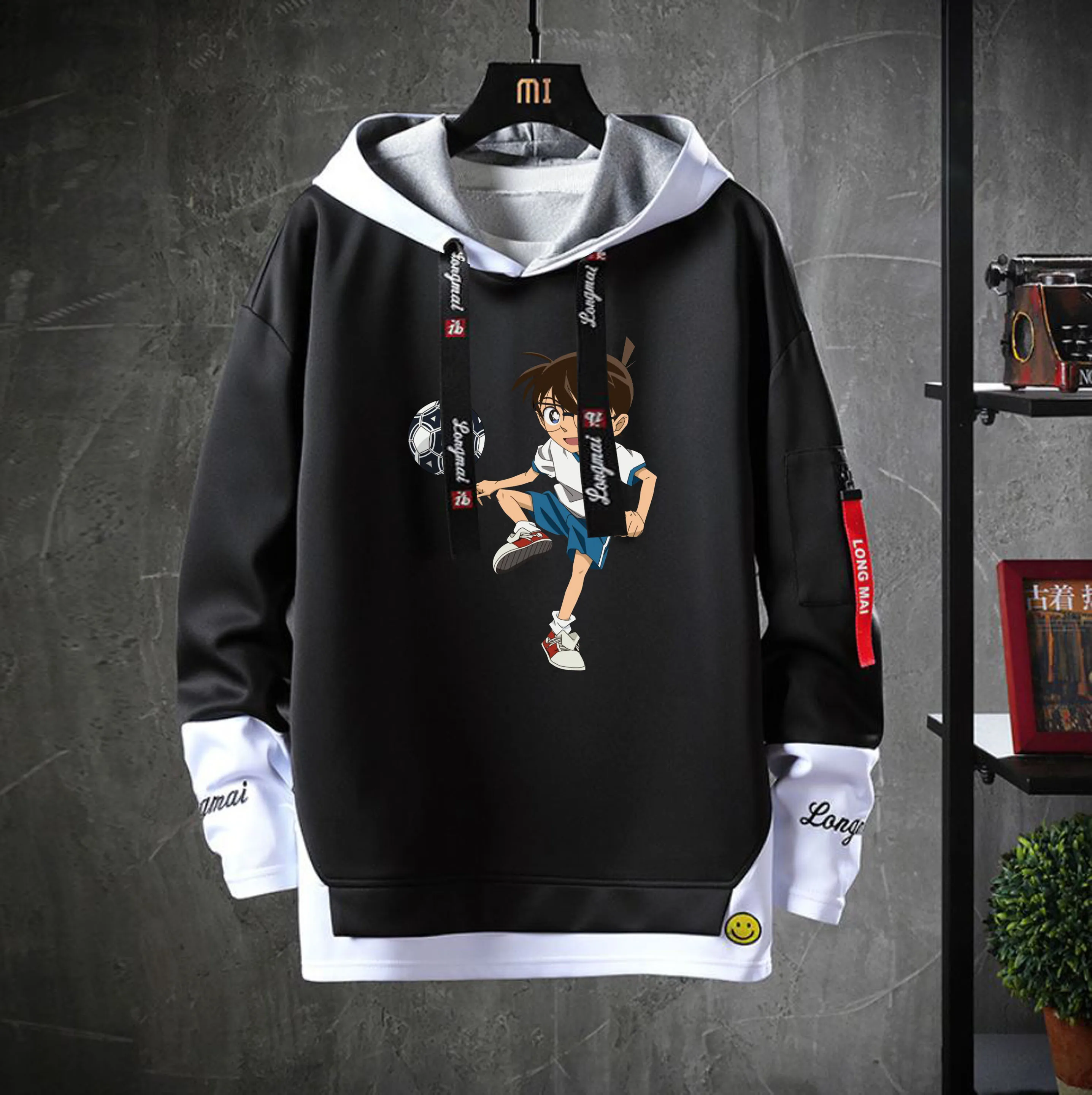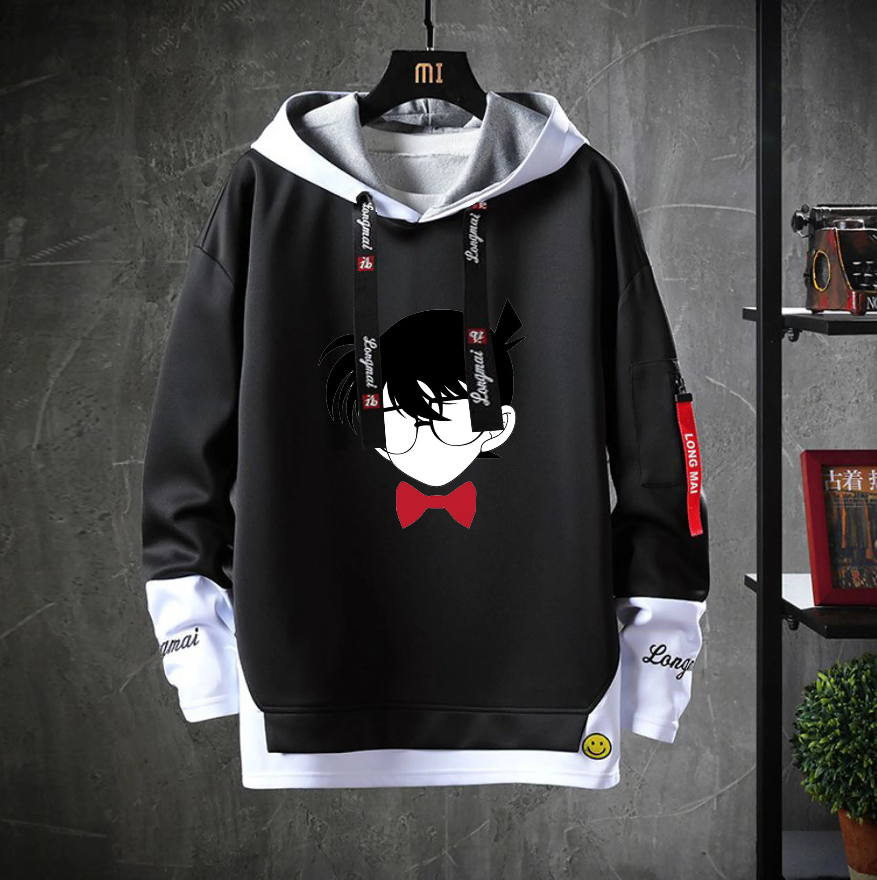 Аниме Детектив Конан с капюшоном для подростков Конан мультяшный костюм унисекс Повседневный фальшивый костюм из двух предметов
