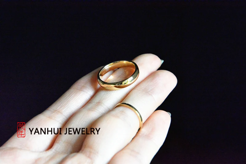 Кольцо из чистого 18-каратного золота яньхой, гладкое обручальное кольцо для влюбленных, для женщин и мужчин, JR050