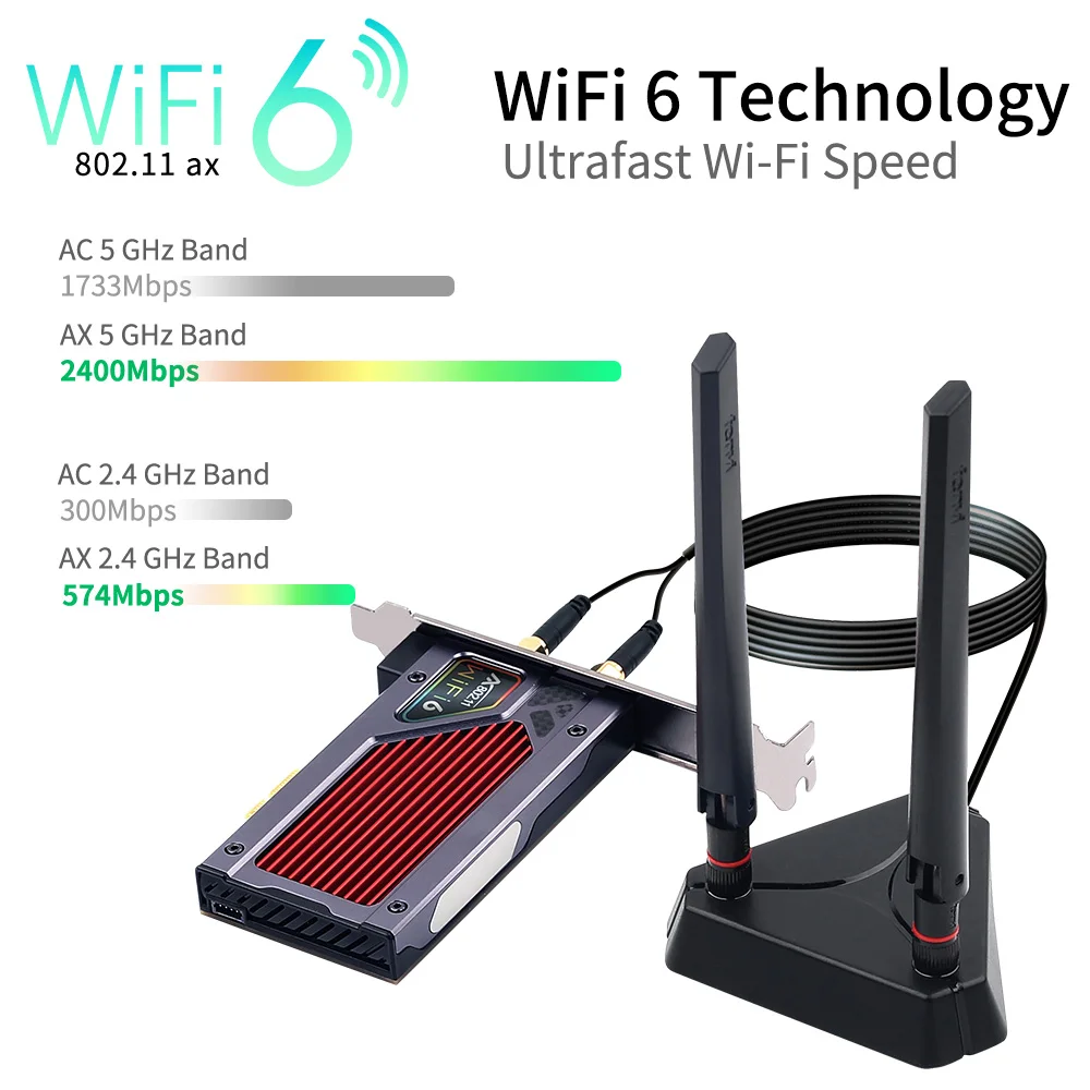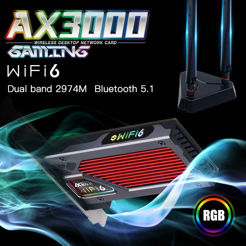Fenvi AX3000RGB Wi-Fi 6 PCIe Wi-Fi карта для ПК, игровой настольный компьютер для Bluetooth5.2, двухдиапазонный 802.11AX, беспроводной адаптер, железная RGB подсветка