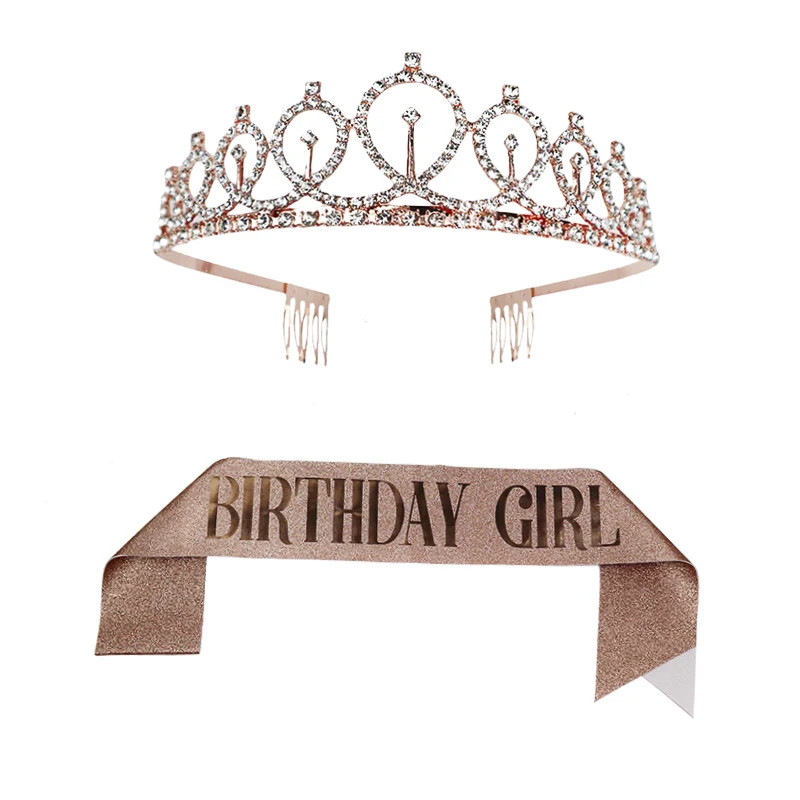 Розовое золото украшение для дня рождения блеск пояс кристалл корона набор для девочек тиара с днем рождения юбилей праздничные атрибуты