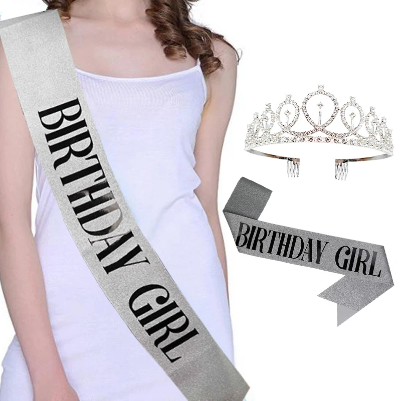 Имя: С Днем Рождения Атласный пояс и хрустальная корона