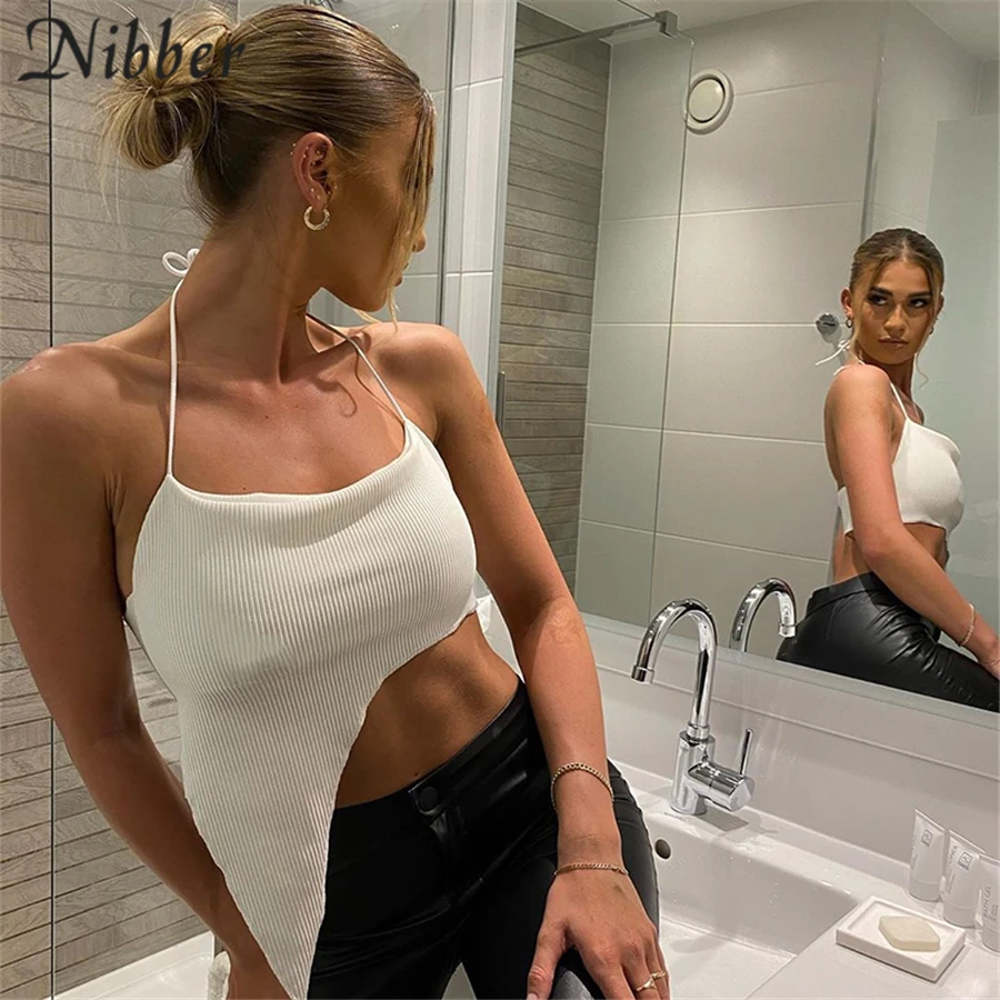 Женский укороченный топ Nibber, облегающий Мягкий Топ с открытой спиной, с глубоким вырезом, в рубчик, для клуба, вечеринки, домашняя одежда на лето