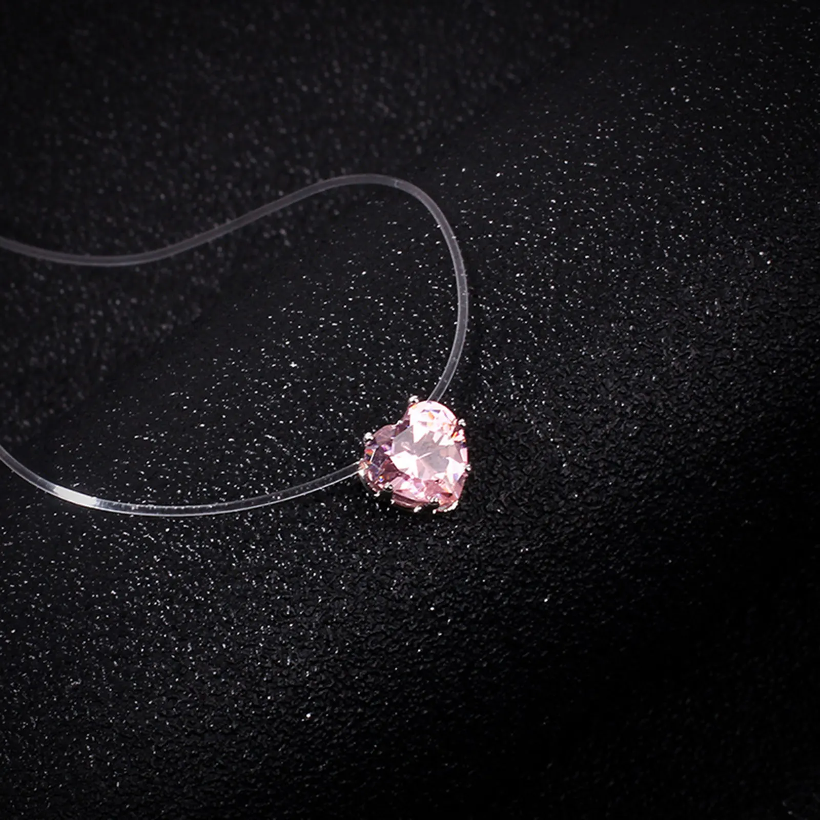 Ожерелье из прозрачной лески женское, модное колье с маленькими сердечками, невидимое Ювелирное Украшение для ожерелье из циркона лески
