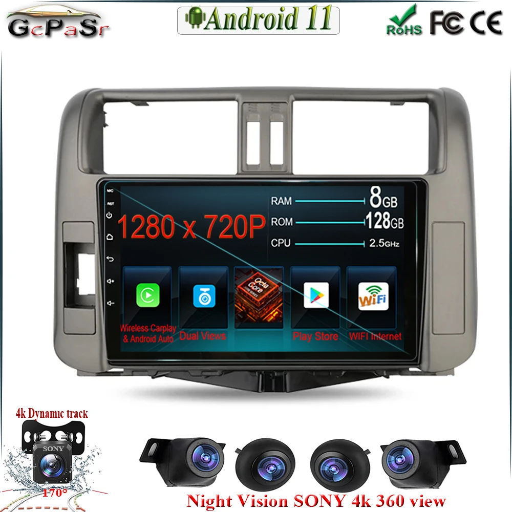 Автомагнитола на Android 11 для Toyota Land Cruiser Prado 150 2010-2013, сенсорный экран, стерео, GPS-навигация