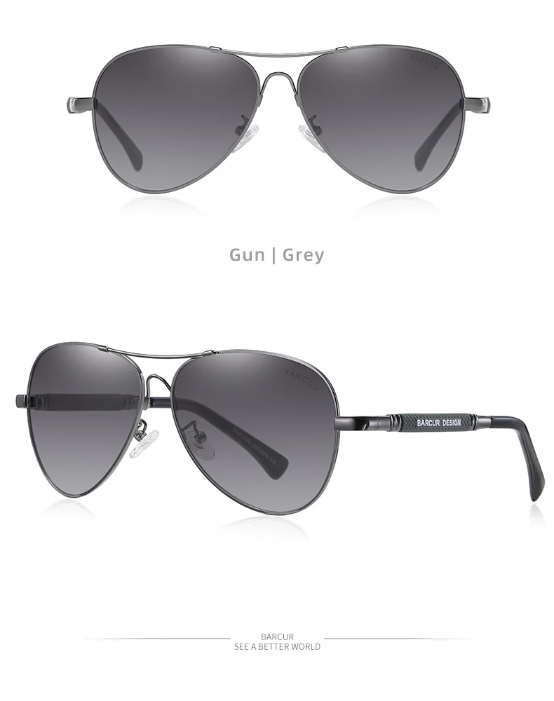 Мужские солнцезащитные очки в металлической оправе BARCUR Pilot, по...