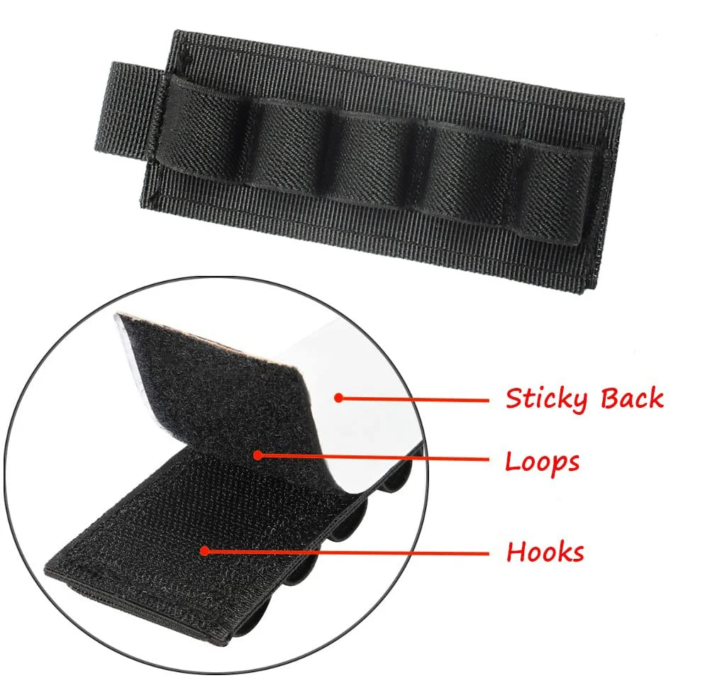 1. Изготовлен из прочного эластичного нейлона 1000D.2. Держатель поставляется с липкой задней петлей, чтобы разместить Держатель корпуса на боковой стороне пистолета или пуговицы.3. Держатели идеально помещаются в мешок для дробовика для быстрой замены пустого бокового седла после тактической перезагрузки.4. Легко установить и держать ваши снаряды в быстром положении доступа.