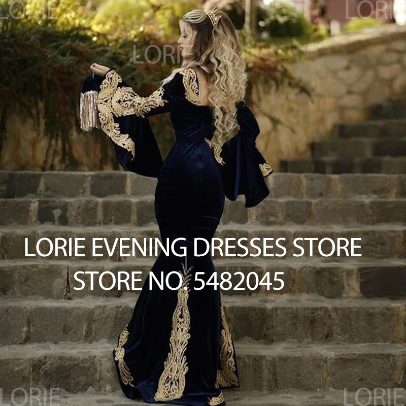 Вечернее платье LORIE, из 3 предметов, с золотыми кружевами и длинным рукавом, с юбкой-годе