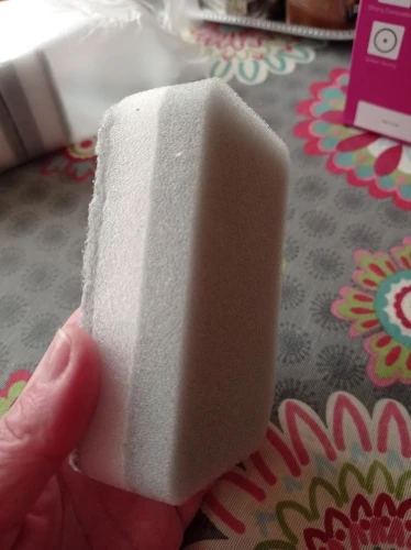 обыкновенная губка,только 3х слойная.Верхняя "наждачка" правда крепче,чем у наших губок. Как себя поведет в использовании покажет время. спасибо продавцу за более быструю доставку