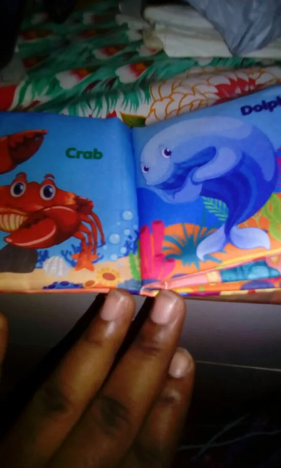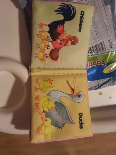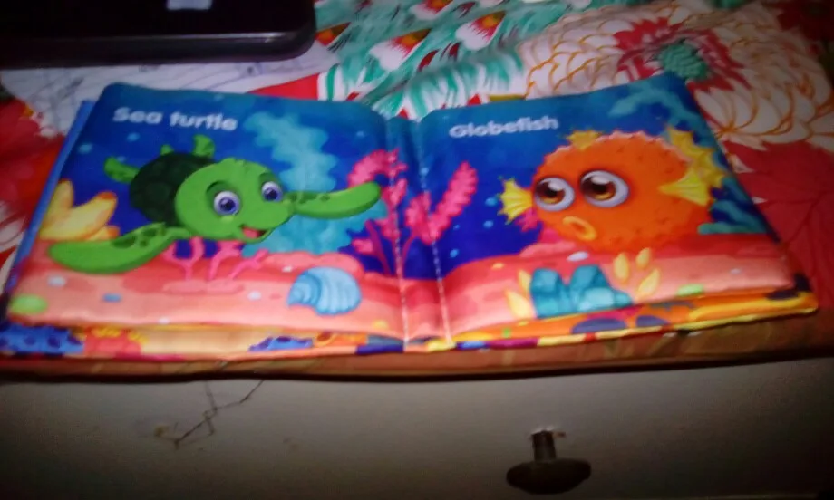 Хорошенькая книжка. Тканевая, внутри есть шуршащая бумага , поэтому ребёнку будет интересно. Маленькая книжечка , самое то на 5-6 месяцев