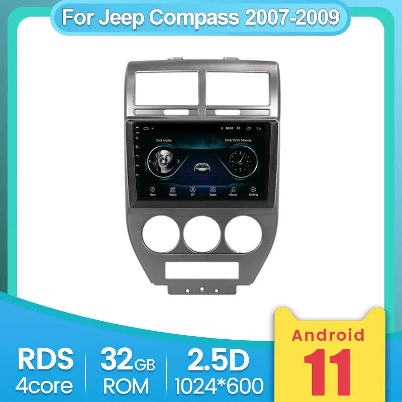 Автомобильный мультимедийный видеоплеер, Android 2G + 32G 2.5D, для Jeep Compass 2007-2009, автомобильное радио, стерео, WIFI, GPS-навигация, DVD