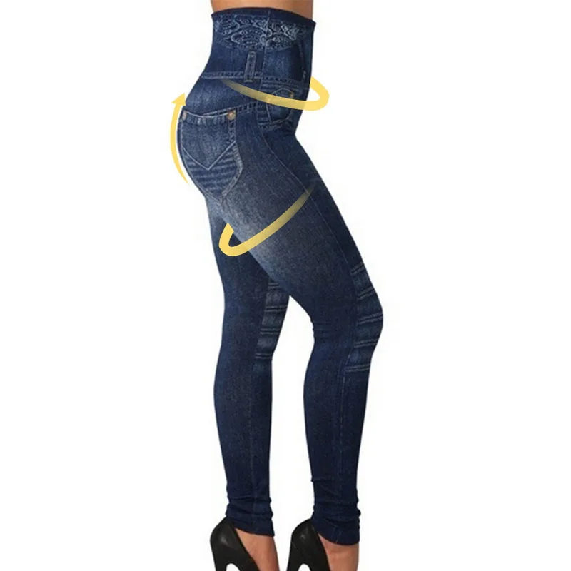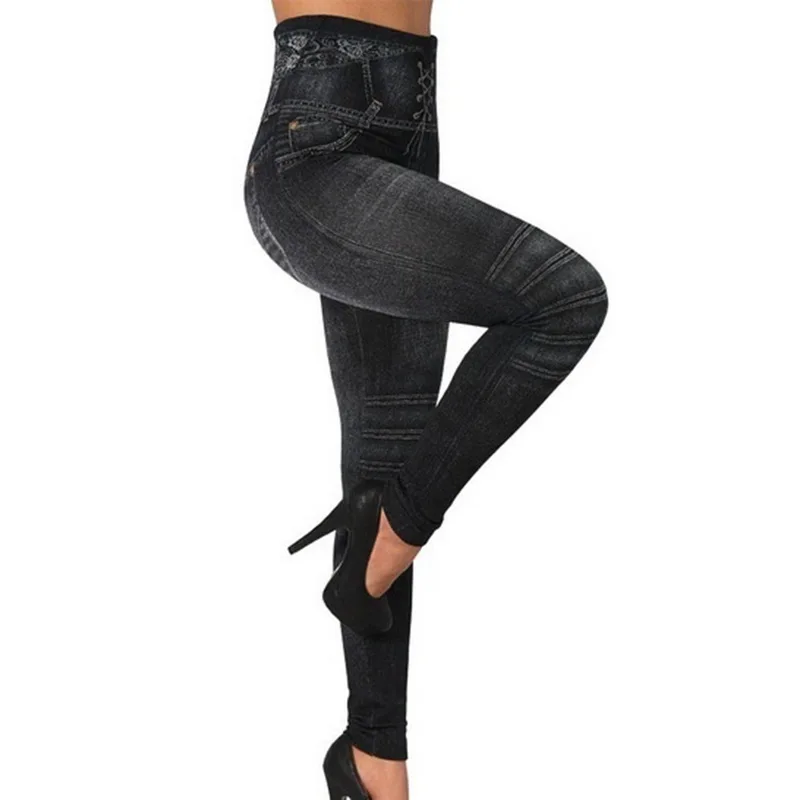 Женские пикантные бесшовные теплые джинсовые леггинсы с эффектом пуш-ап и высокой талией, женские эластичные Джеггинсы из искусственного денима, брюки, женские леггинсы 3XL