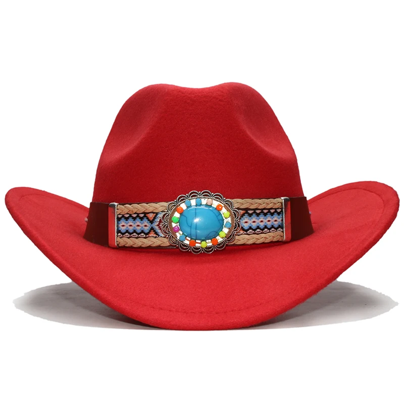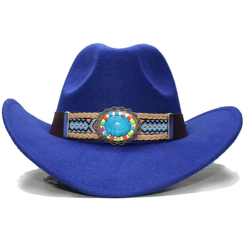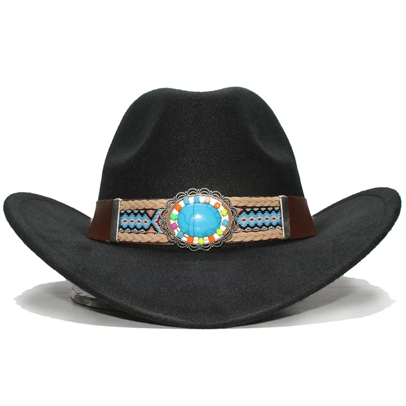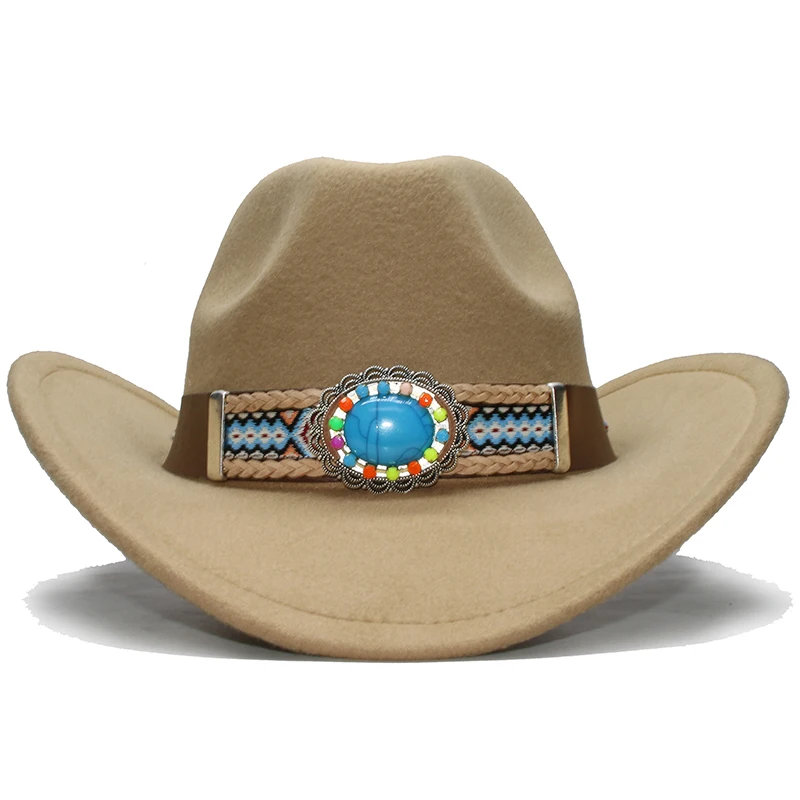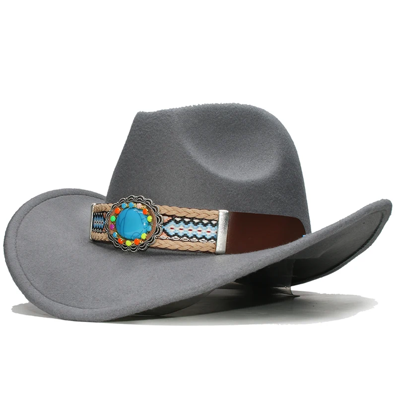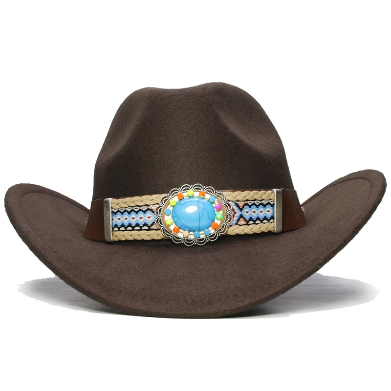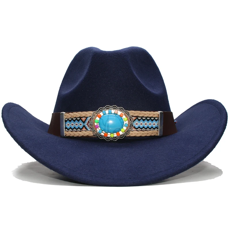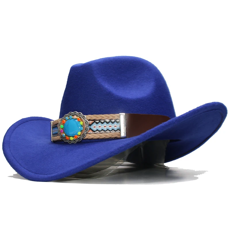 Бирюзовая вязаная кожаная повязка с бисером, шерстяная фетровая ковбойская шляпа с широкими полями, ковбойская шляпа-котелок, кепка сомбреро (Выберите размер 54-61 см)