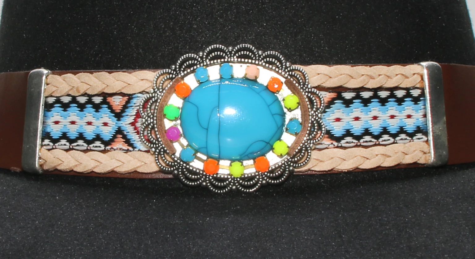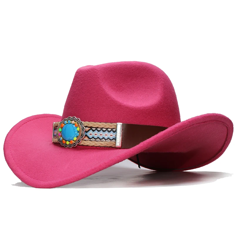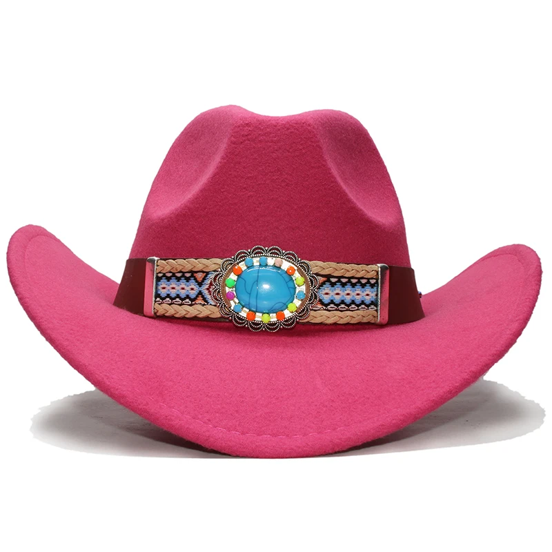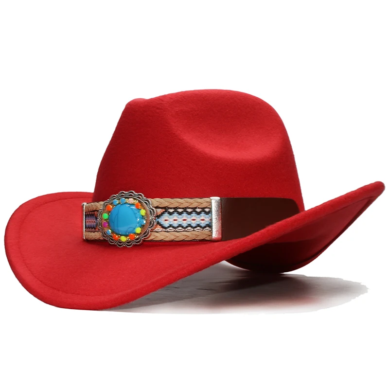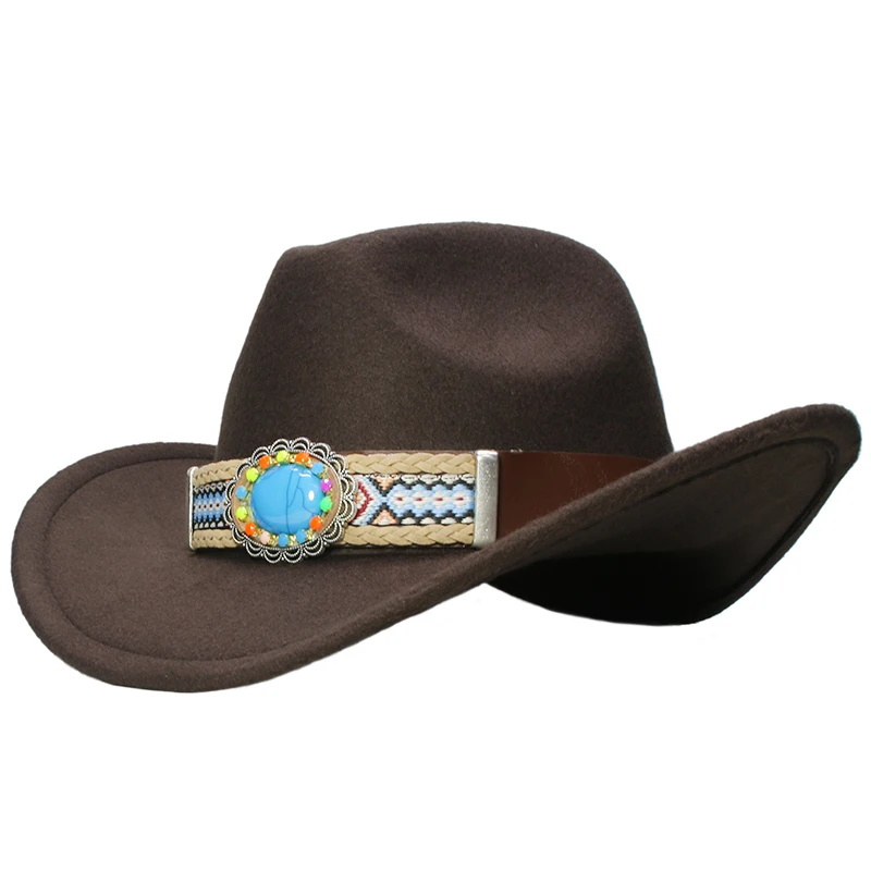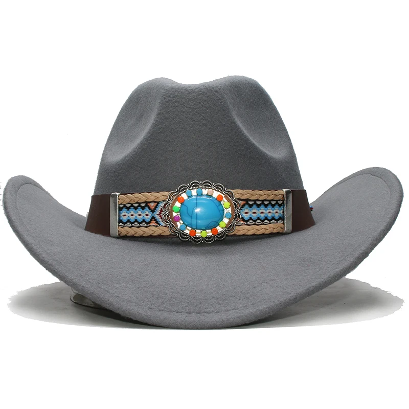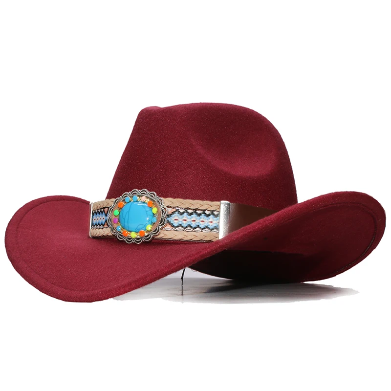 Бирюзовая вязаная кожаная повязка с бисером, шерстяная фетровая ковбойская шляпа с широкими полями, ковбойская шляпа-котелок, кепка сомбреро (Выберите размер 54-61 см)