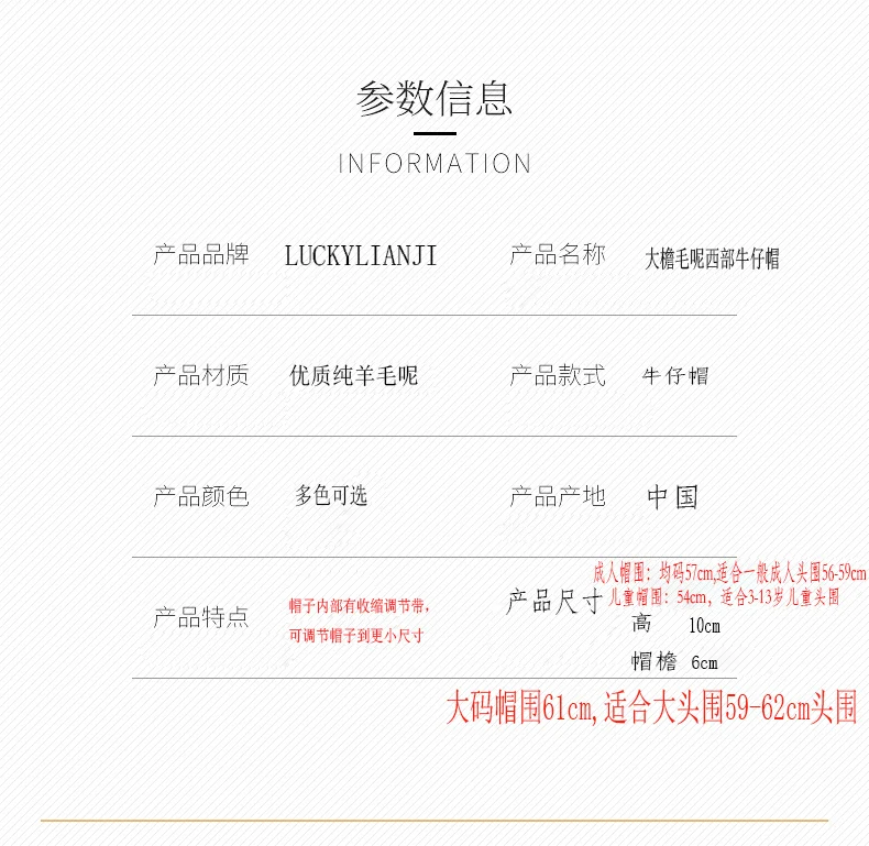 Большой размер головы:7 5/8,Отрегулируйте веревку внутри шляпы, чтобы уменьшить размер шляпы.