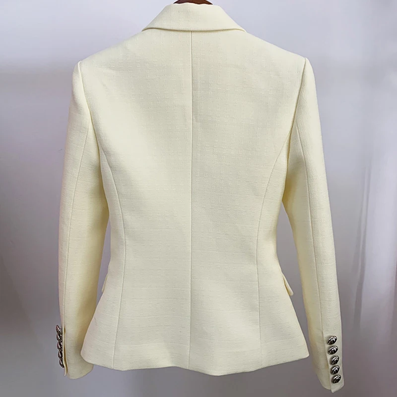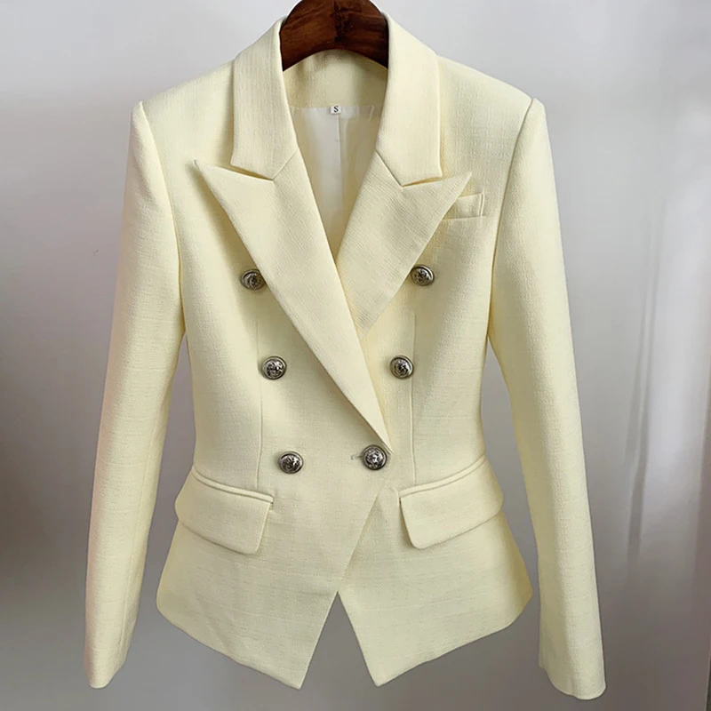 Женский классический блейзер, двубортный приталенный Блейзер из хлопка и льна с золотистыми пуговицами, костюм кремово-белого цвета, осень 2021