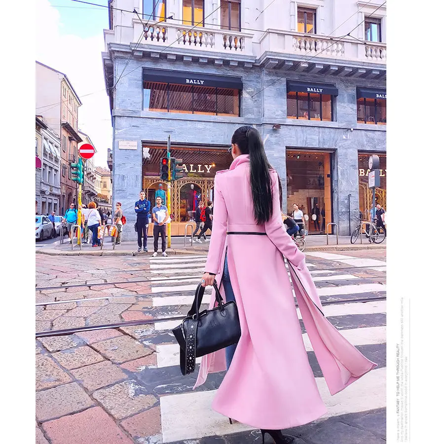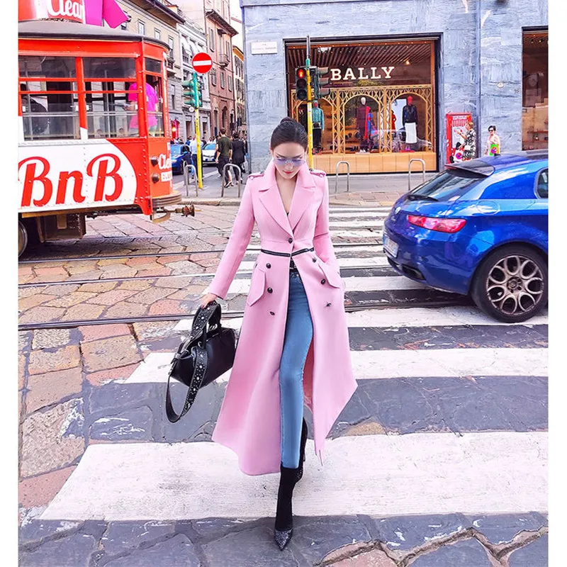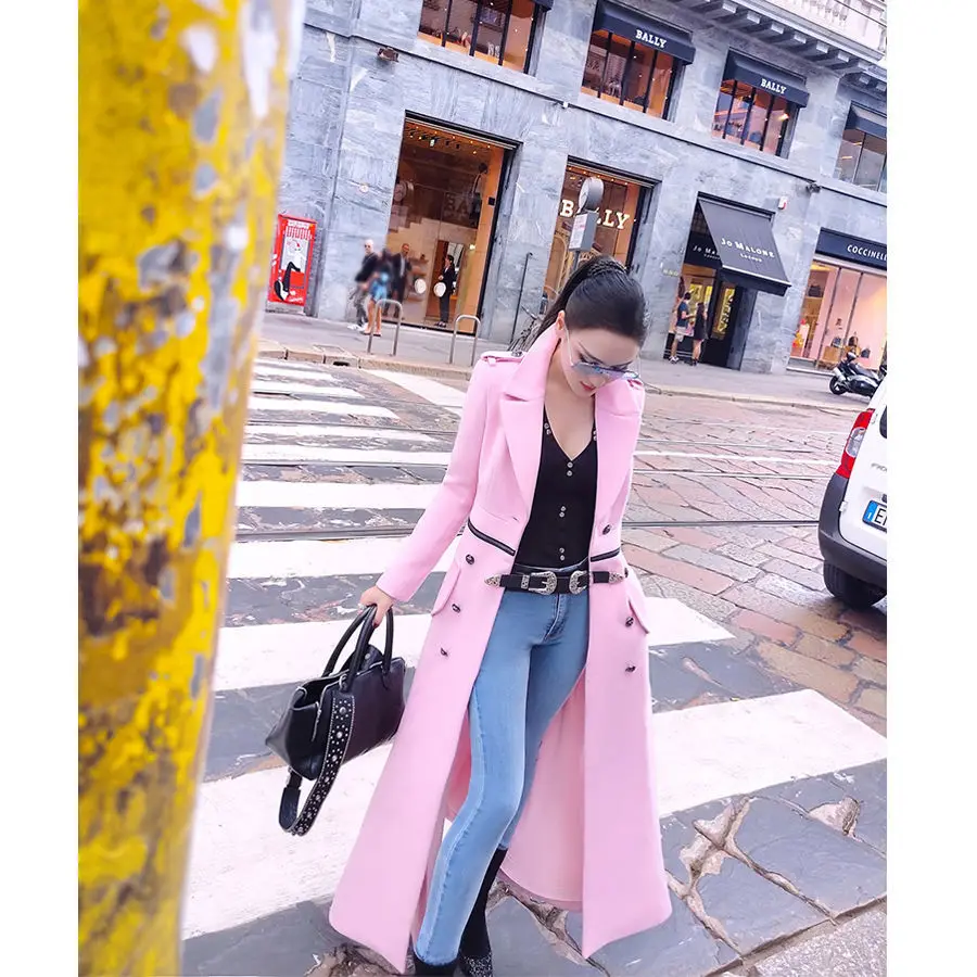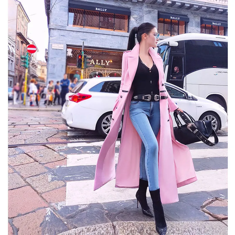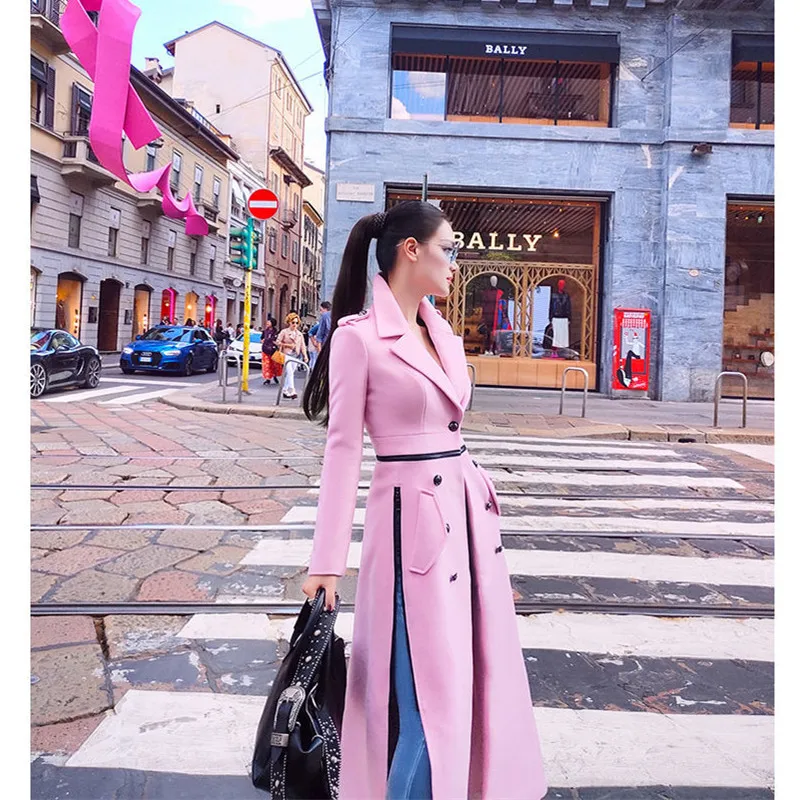 HANZANGL осень-зима 2020 новые женские средней длины Шерстяное пальто с длинными рукавами и лацканами Мода Темперамент ветровка куртка XS-XXXL