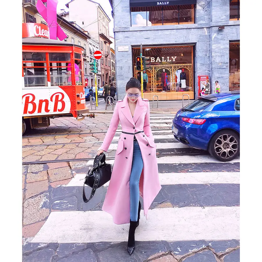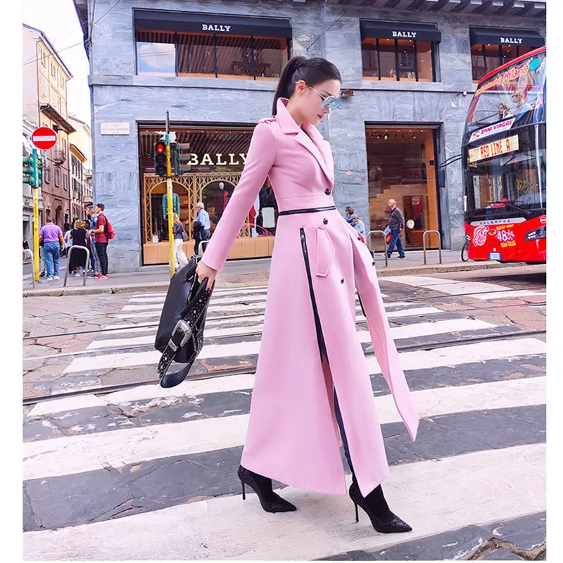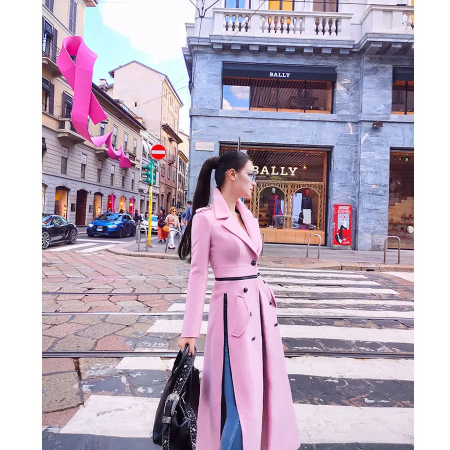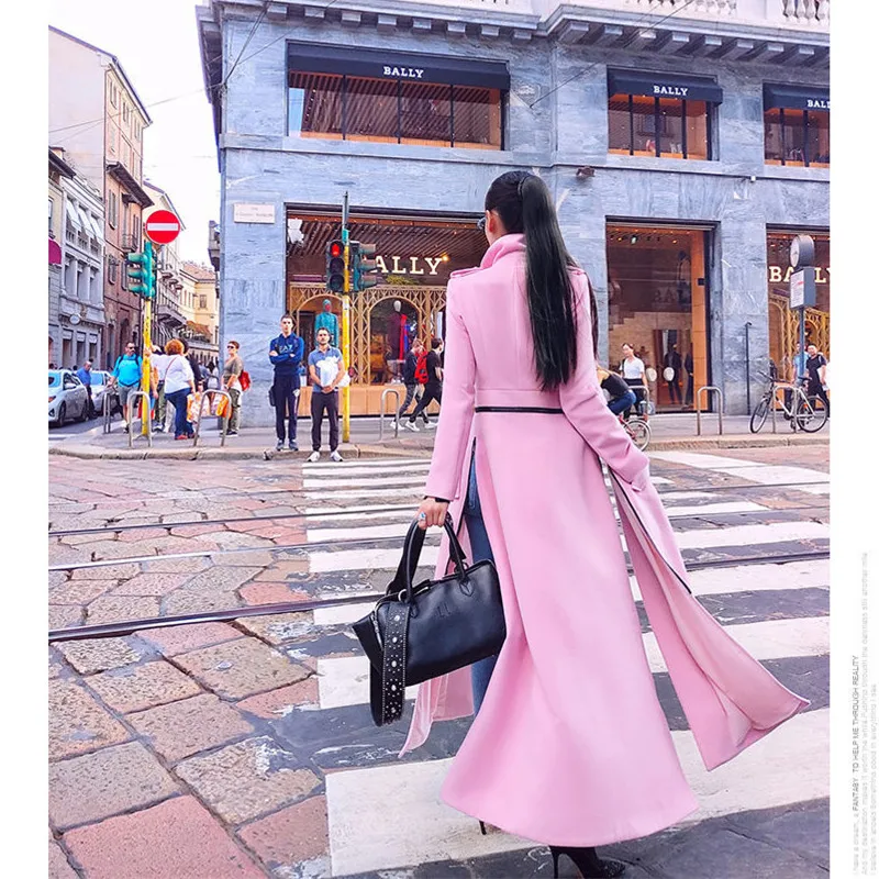 HANZANGL осень-зима 2020 новые женские средней длины Шерстяное пальто с длинными рукавами и лацканами Мода Темперамент ветровка куртка XS-XXXL