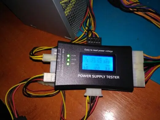 1. Вставьте блок питания 24 PIN и P4 , P6 или P8 в соответствующий разъем набора тестов мощности.2. Питание от источника питания, услышит кольцо "DuDu", если нет мерцания, то выходное напряжение источника питания является нормальным.3. Если не был обнаружен определенный сигнал напряжения или обнаружено значение напряжения над нормальным, будет выдан длинный зуммер "DuDu"; Если соответствующее значение напряжения или PG мерцание тоже, затем сбой питания.