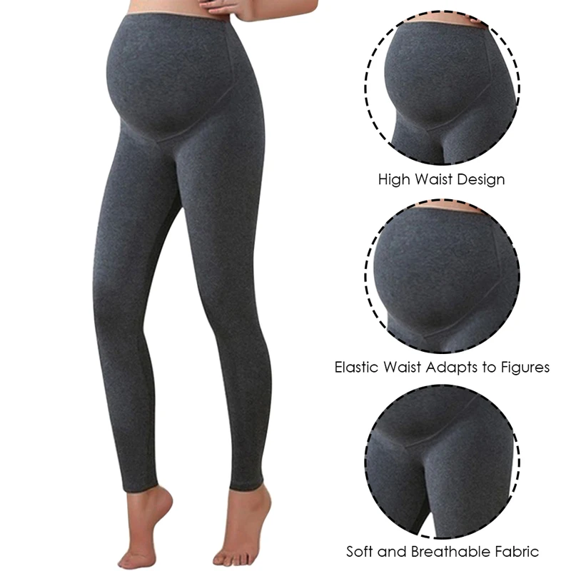 Зимние леггинсы, брюки, теплая однотонная Одежда для беременных женщин, эластичные брюки-карандаш с высокой талией, черные брюки, брюки