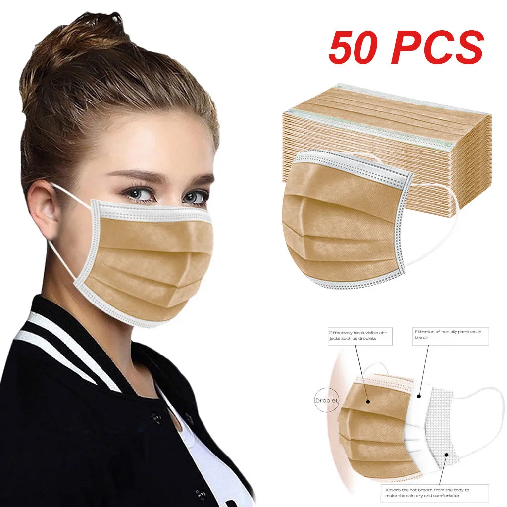 Зеленая одноразовая маска для лица, 50 шт., 3-слойная многоразовая маска для рта с петлями для ушей, модная компактная маска для лица, новая маска
