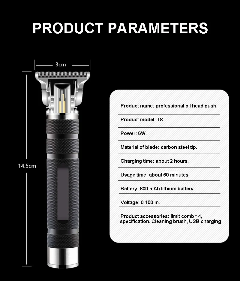 Машинка для стрижки волос Мужская аккумуляторная, T9, обновленная, 0 мм