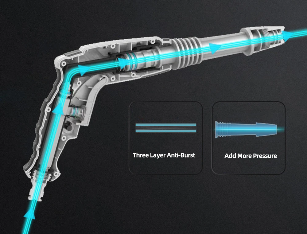 Пистолет пластиковый, но он делает свою работу. Шланги отличные.