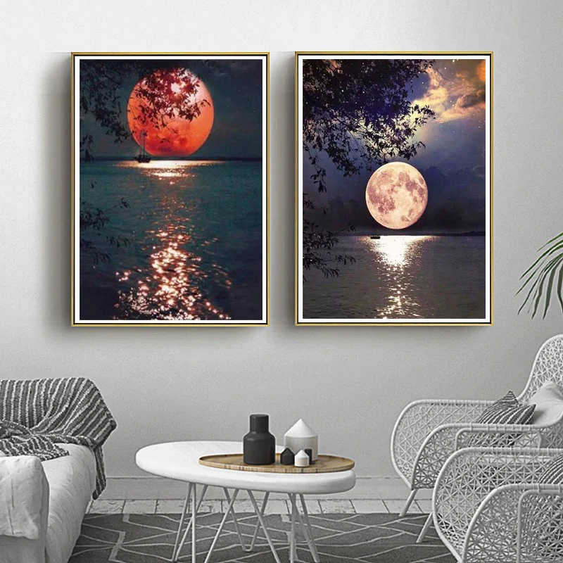 5D алмазная живопись полнолунный пейзаж сделай сам, алмазная вышивка, подарки, мозаичные картины, вышивка крестиком, стразы, украшение